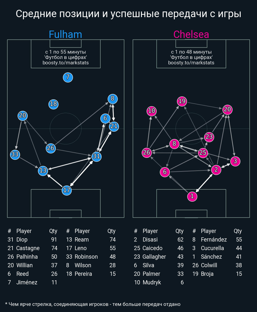 84 успешных передач из 92 попыток (5 с продвижением, )