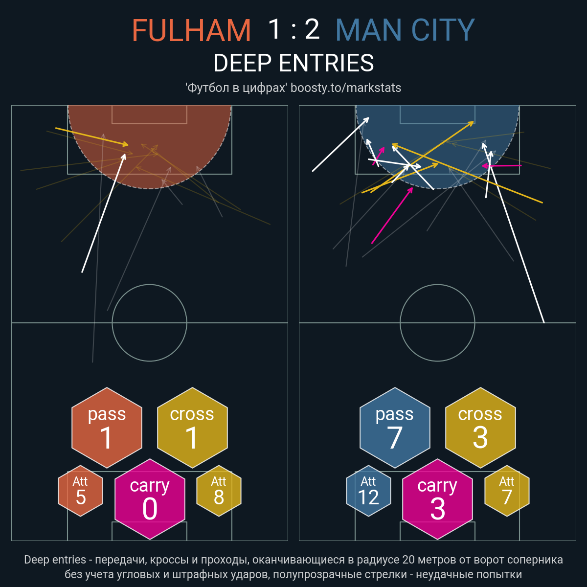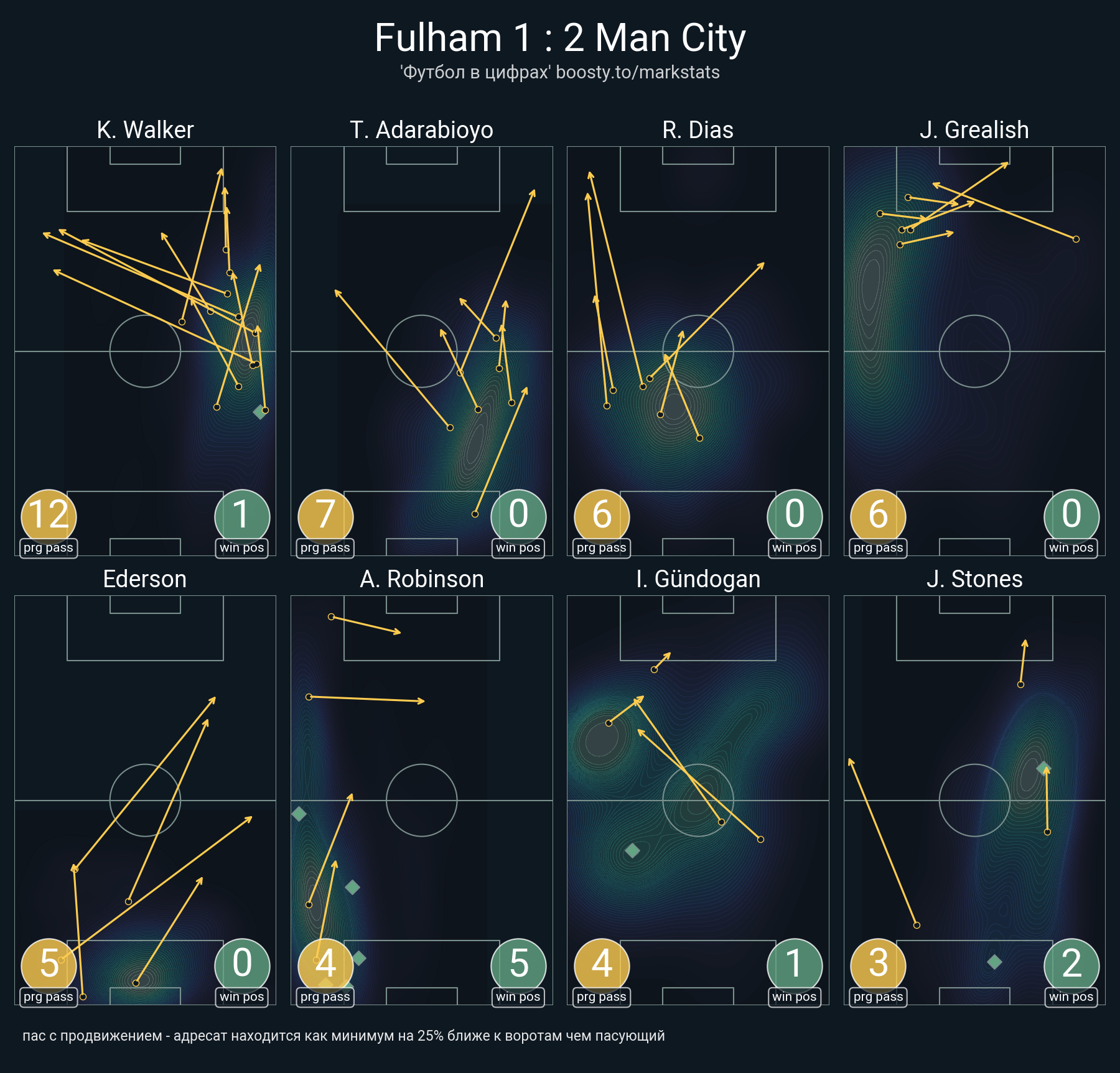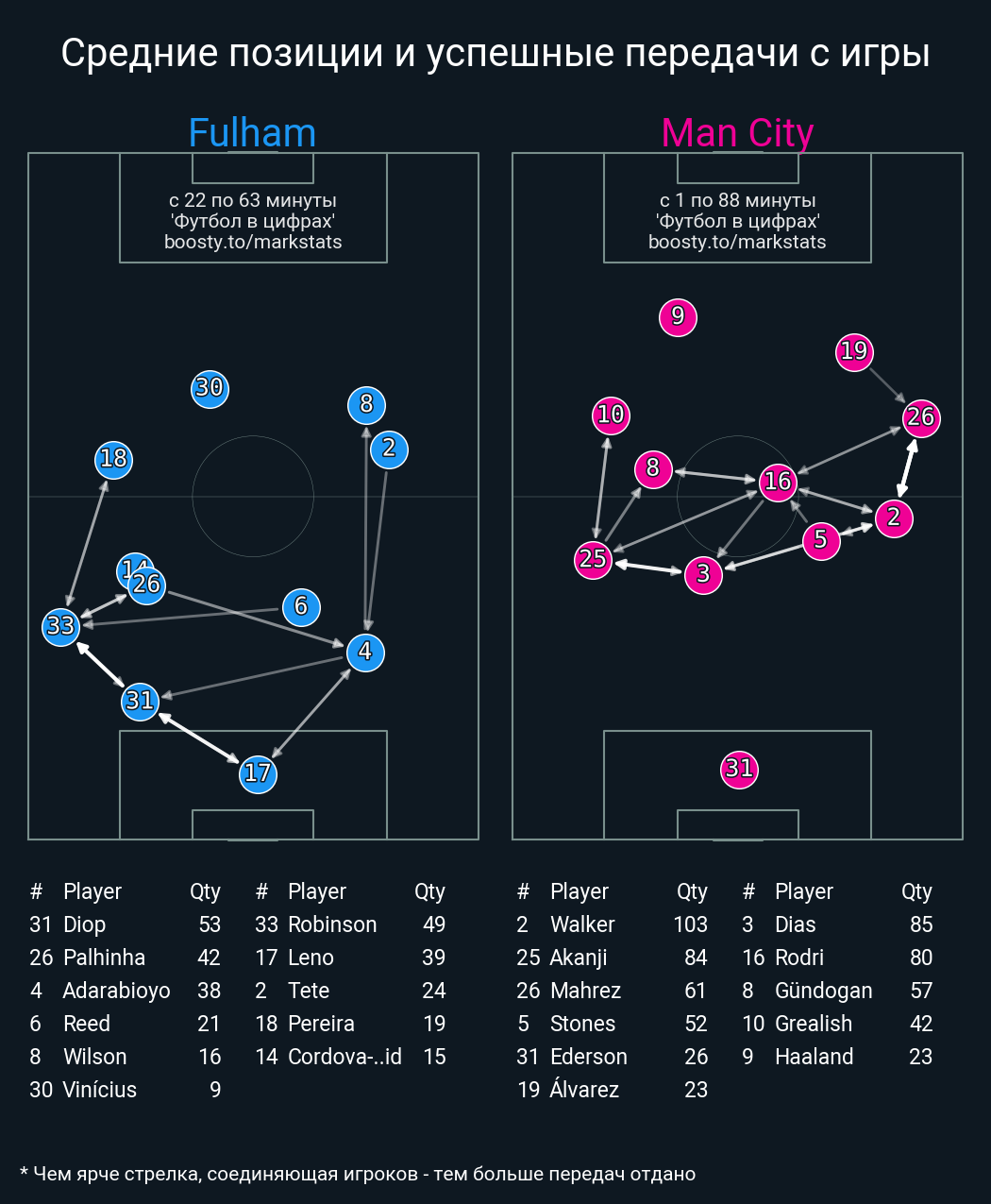 104 успешных передач из 117 попыток (12 с продвижением, 12 на трети соперника)