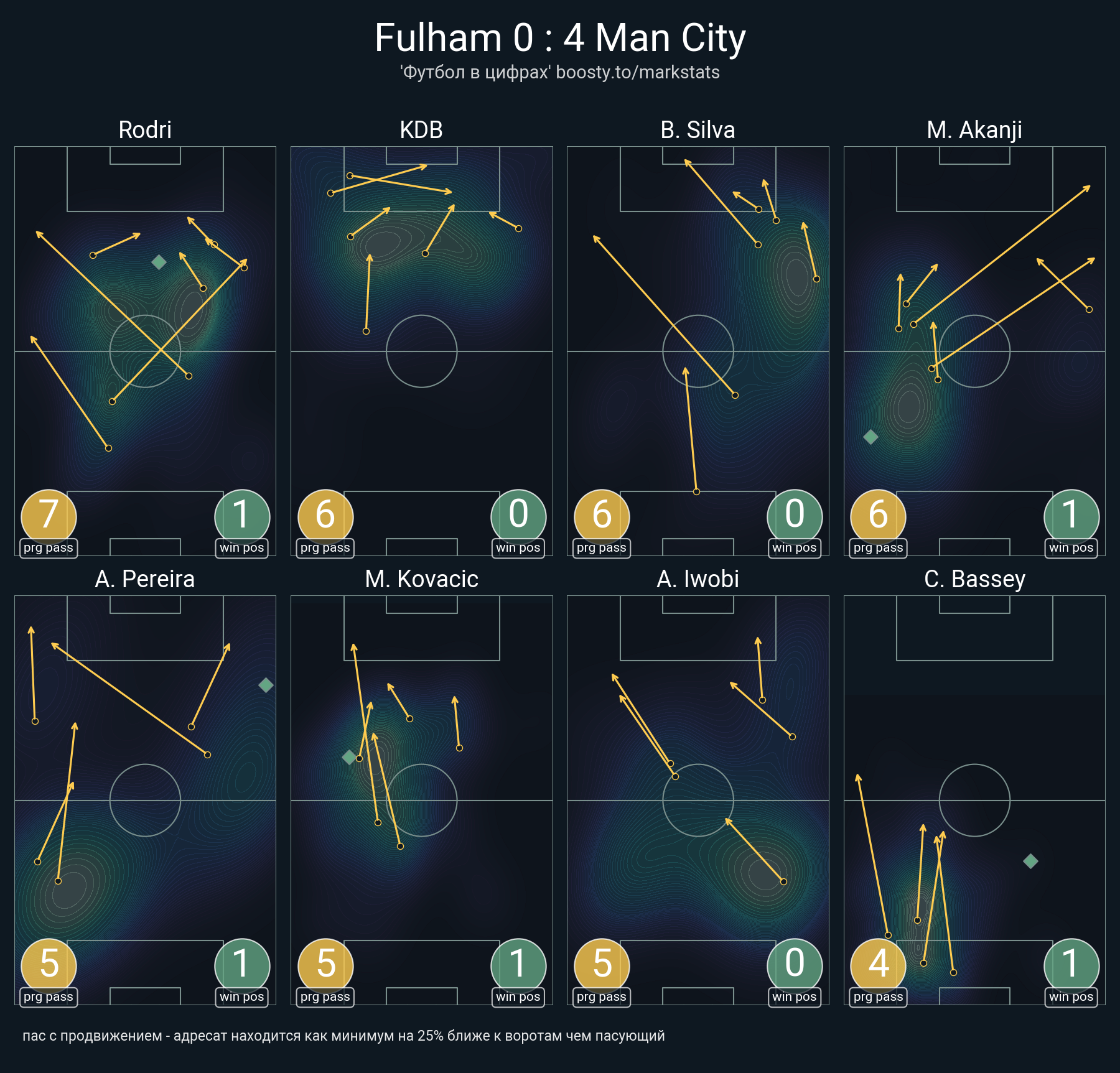 35 успешных передач из 47 попыток (1 ассист, 6 под удар, 6 с продвижением, 22 на трети соперника)