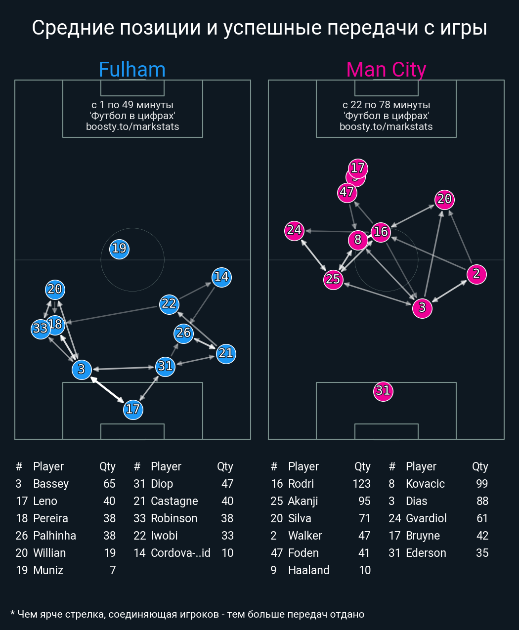 118 успешных передач из 123 попыток (1 под удар, 7 с продвижением, 19 на трети соперника)