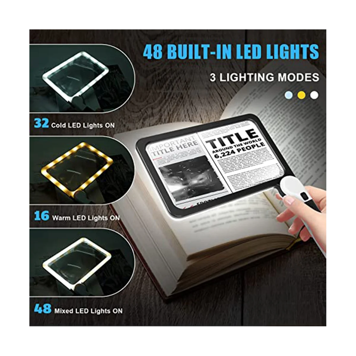mDoupbALGHere you can buy Full-Page 5X Magnifying Glass for Reading, Folding Lighted Magnifier with 48 LED Lights, Rectangular Handhold Magnifier with free delivery to your post office.
