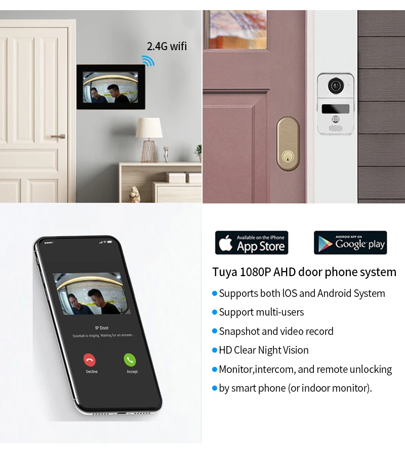 eQcWMbeOyHere you can buy Full Visual Wifi Wireless Video Door Phone Lock Bell 1080p Touch Screen Video Intercom Tuya Smart Life Motion Detection Record with free delivery to your post office.
