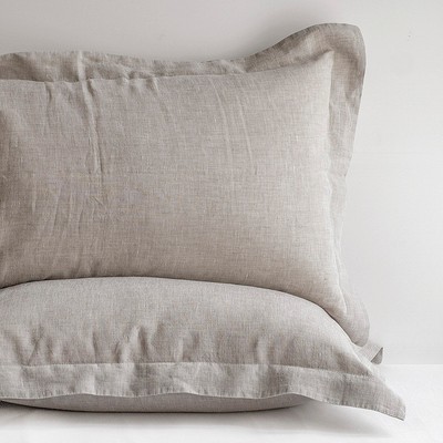 The pillow cover front is shorter in length than the back . This is because the back contains the pocket . Both front and back have a 1" flange, or overhang, on the open end . It is hemmed under on the front . On the back, it is hemmed as well, but extends on up inside to create the inside pocket . The "back" to my pillow was teh blue side .