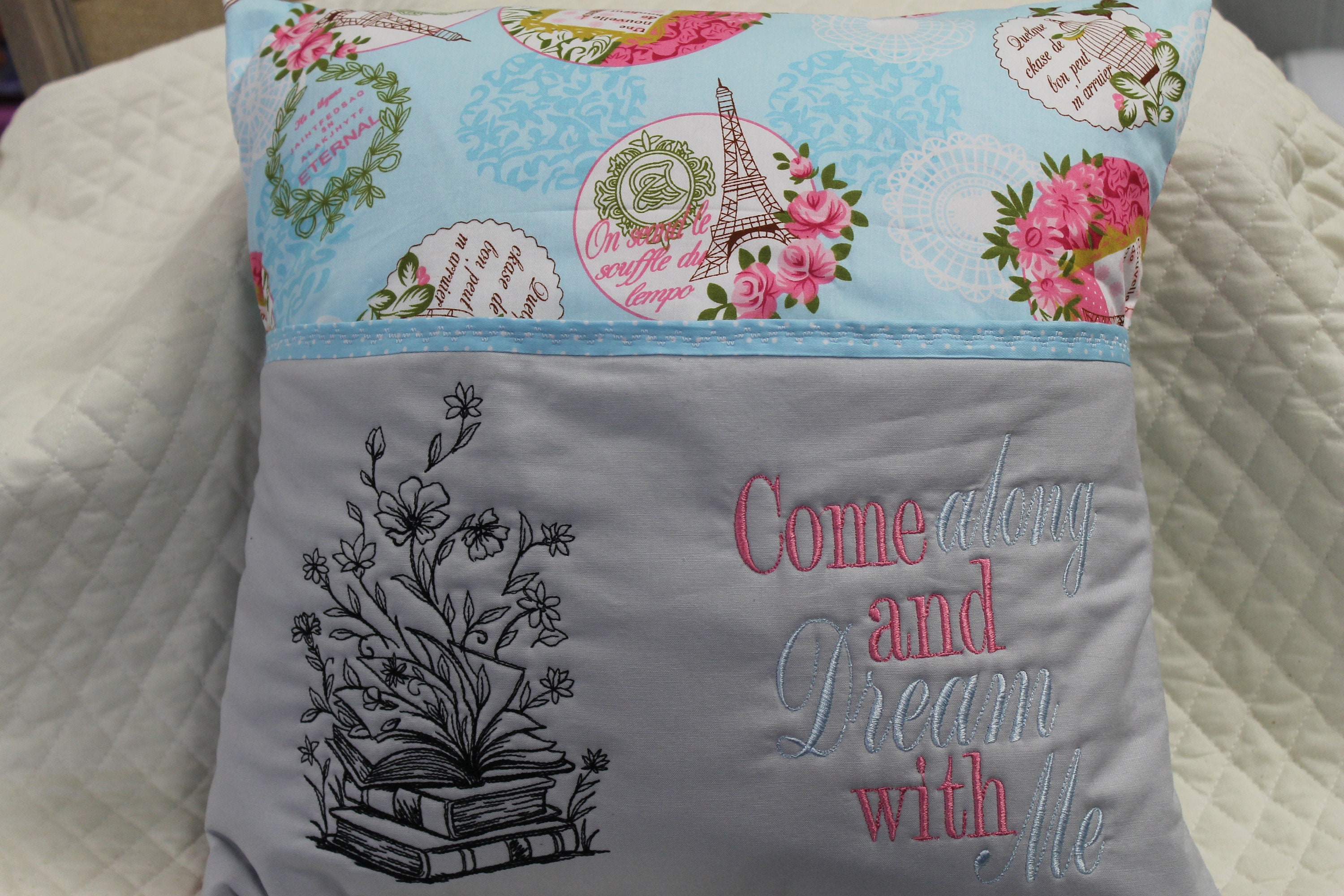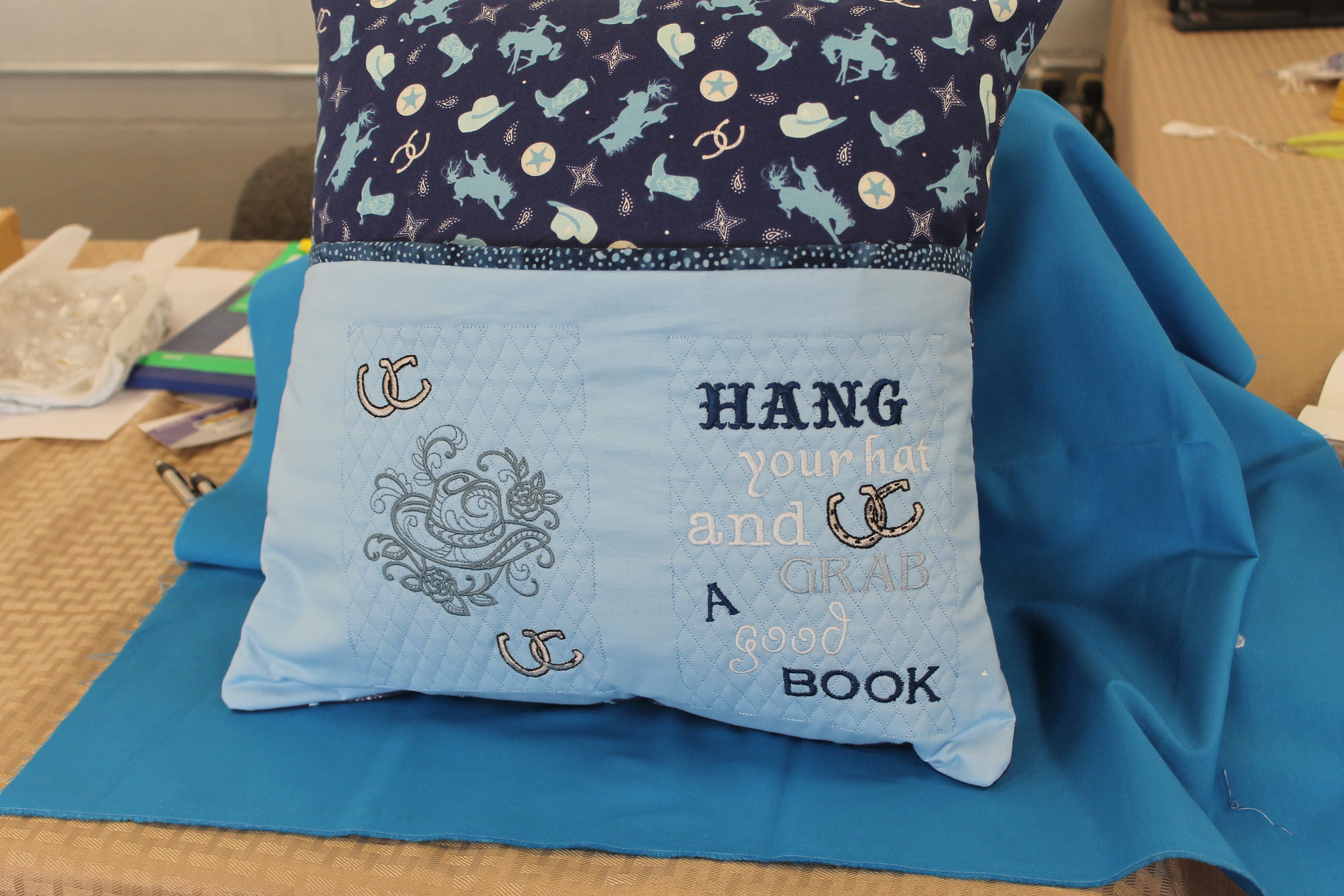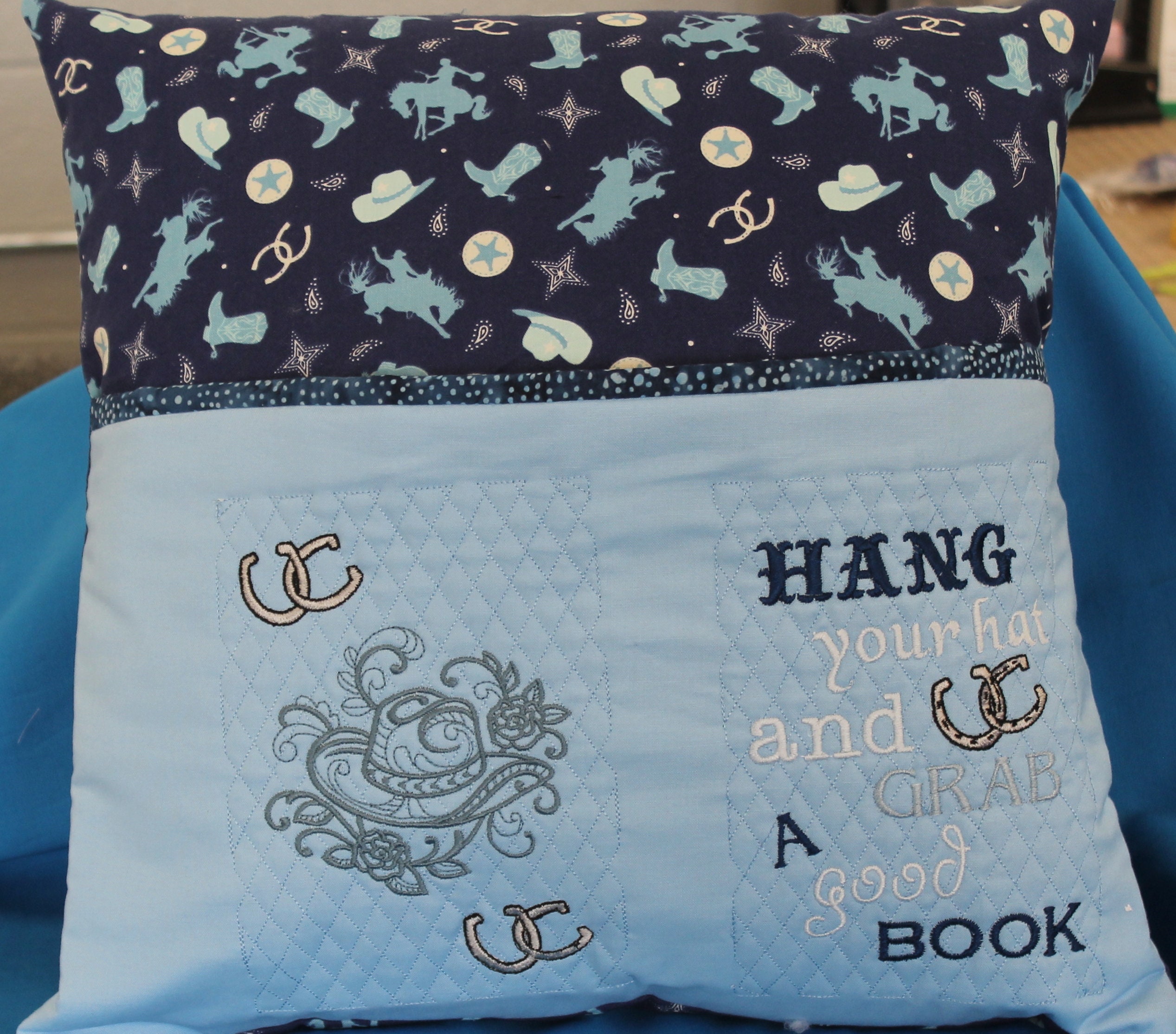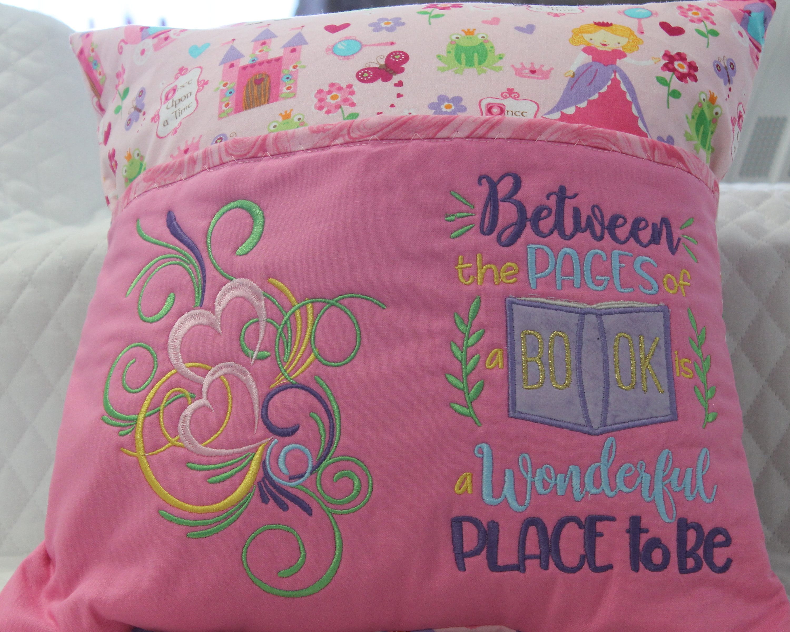 Instructions for how to sew a pocket pillow, reading pillow or book / storybook pillow for machine embroidery . For sewing machine and embroidery using a 16"x . . .