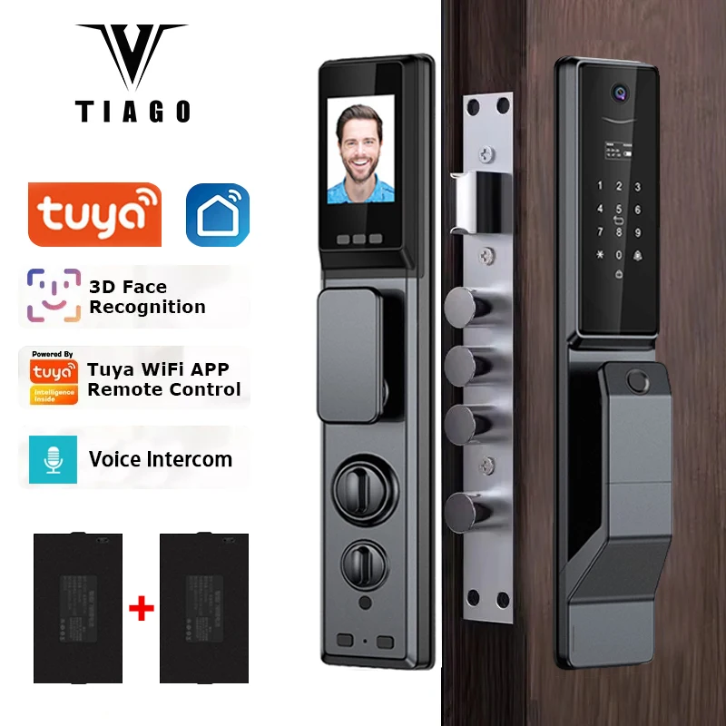 KakVJNQxBOHere you can buy Fully Automatic Face Fingerprint Password Smart Door Lock With Camera WiFi Tuya APP Remote Voice Intercom Electronic Door Lock with free delivery to your post office.