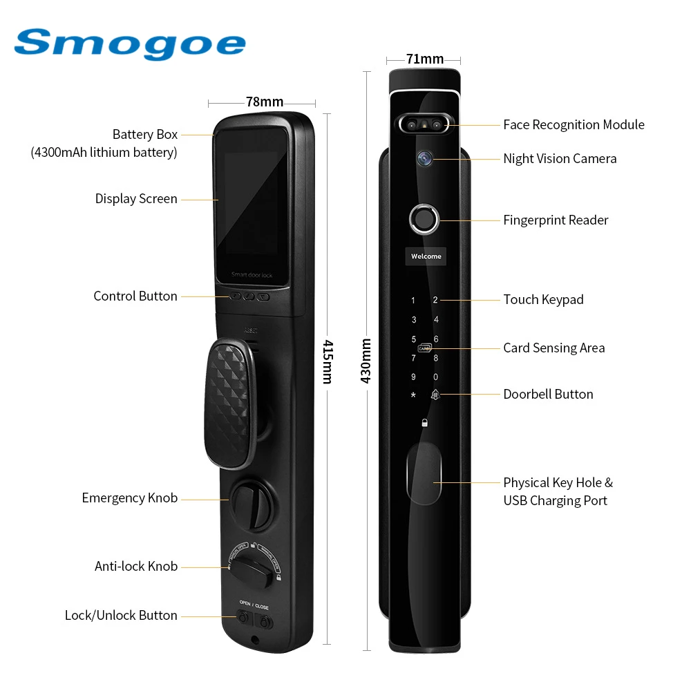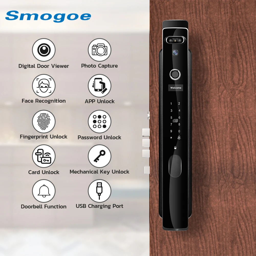OJVFlYgnHere you can buy Fully Automatic Smart Door Lock Face Fingerprint Card Unlock Tuya App Remote Unlock Keyless Entry Electronic Digital Door Lock with free delivery to your post office.
