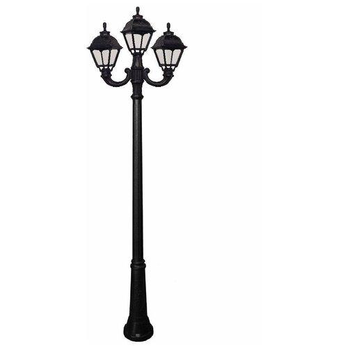Lanterne de jardin de taille moyenne série FUMAGALLI CEFA, modèle RICU OFIR/CEFA 2L+1. Lampe de jardin avec 2 lanternes CEFA sur consoles OFIR de taille moyenne + lampe couronne montée sur poteau RICU de 2,0 m de hauteur (+ hauteur lanterne). Conçu pour éclairer les allées des parcs, les places, les compositions de jardins et de paysages et d'autres espaces publics. Utilisé comme éclairage public principal dans les rues et les places de la ville. Fabriqué en Italie en utilisant les technologies FUMATECH uniques à partir de RÉSINE polymère composite moderne. Ce matériau est 5 fois plus résistant que le métal, ne rouille pas, ne s'oxyde pas, ne se décolore pas au soleil et n'a pas besoin d'être peint. Toutes les lampes sont protégées contre la poussière et l'humidité selon la norme IP55 (Dustproof, protégée des jets d'eau venant de toutes directions). Le diffuseur est en PMMA (PolyMéthylMetaAcrylate) anti-vandale, non turbidité et ininflammable. La durée de vie de la lampe est d'au moins 20 ans. Utilisez une température de -60 à +90. La série CEFA comprend des lanternes de jardin en version murale (OFIR/CEFA, MIRRA/CEFA), suspendue (SICHEM/CEFA) et au sol (IAFAET.R/CEFA, ALOE.R/CEFA, ARTU/CEFA, GIGI/ CEFA, RICU/CEFA , NEBO/OFIR/CEFA 1L, NEBO/OFIR/ANNA 2L, TABOR/ADAM/CEFA 3L) avec des piliers de différentes hauteurs, avec différents nombres et configurations de têtes. Les consoles de lanternes murales et les supports de lampadaires peuvent être installés en position haute ou basse. Les piliers de plus de 150 cm reposent sur un puissant tube en acier doublement galvanisé. Lors de la commande, vous devez sélectionner la couleur du corps, la couleur de l'abat-jour et le type de douille (E-27 ou LED GX-53). Option LED disponible. En termes de style et de design, la série de lampadaires CEFA est similaire aux grandes lampes de la série SIMON. En taille, elle appartient aux lampes de parc moyennes comme les séries RUT et GLOBE 300.