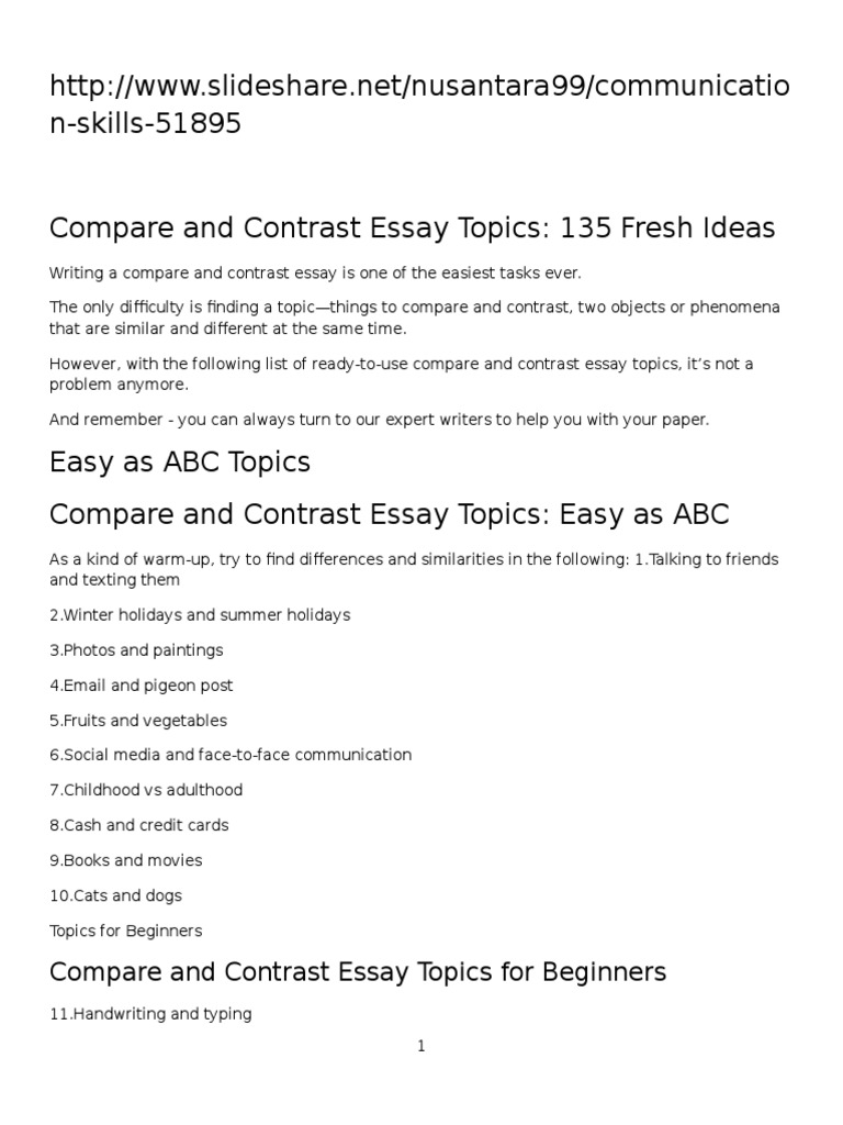 127 Compare and Contrast Essay Topics | HandMadeWriting . . .