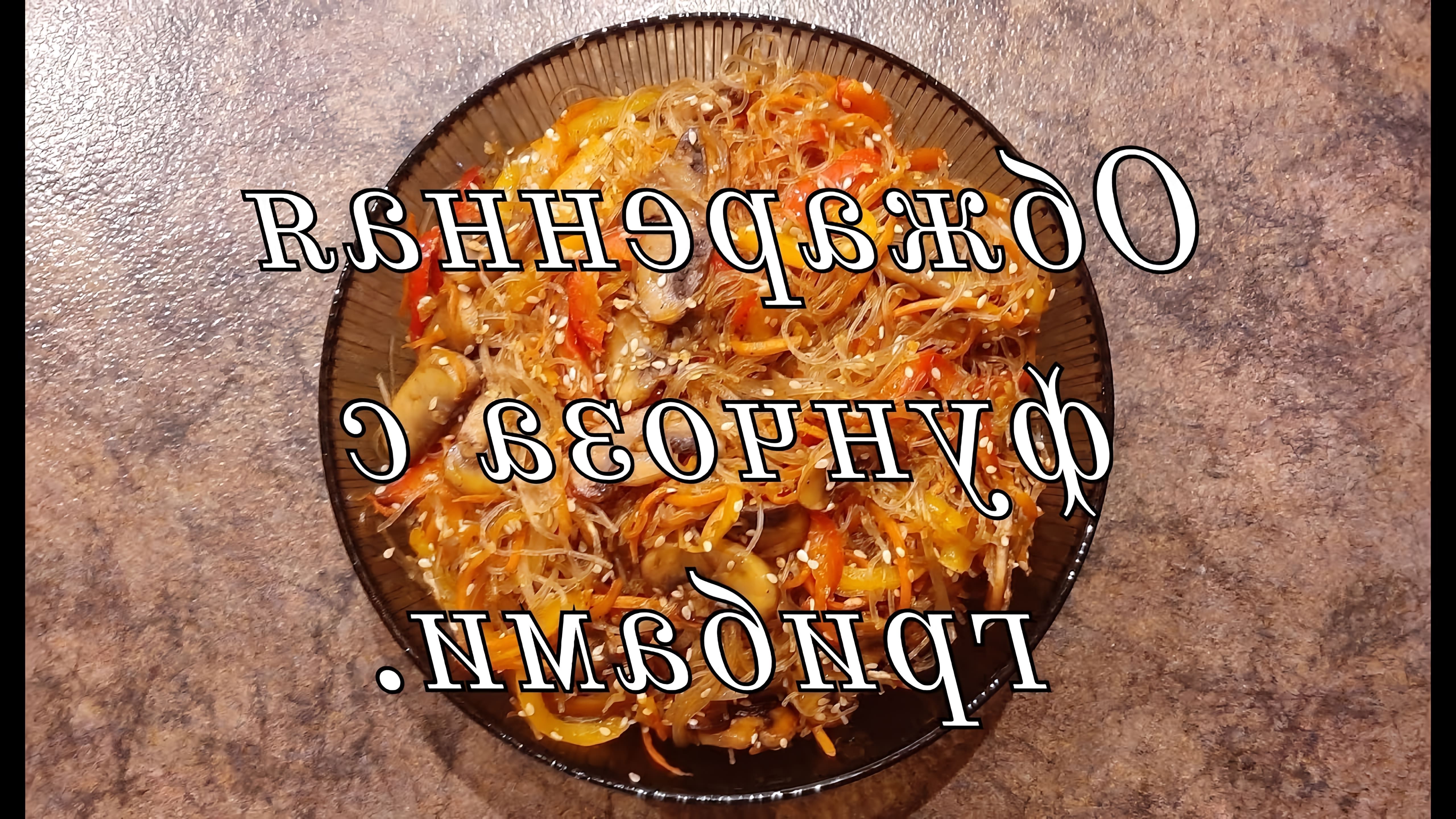 Фунчоза с грибами на сковороде