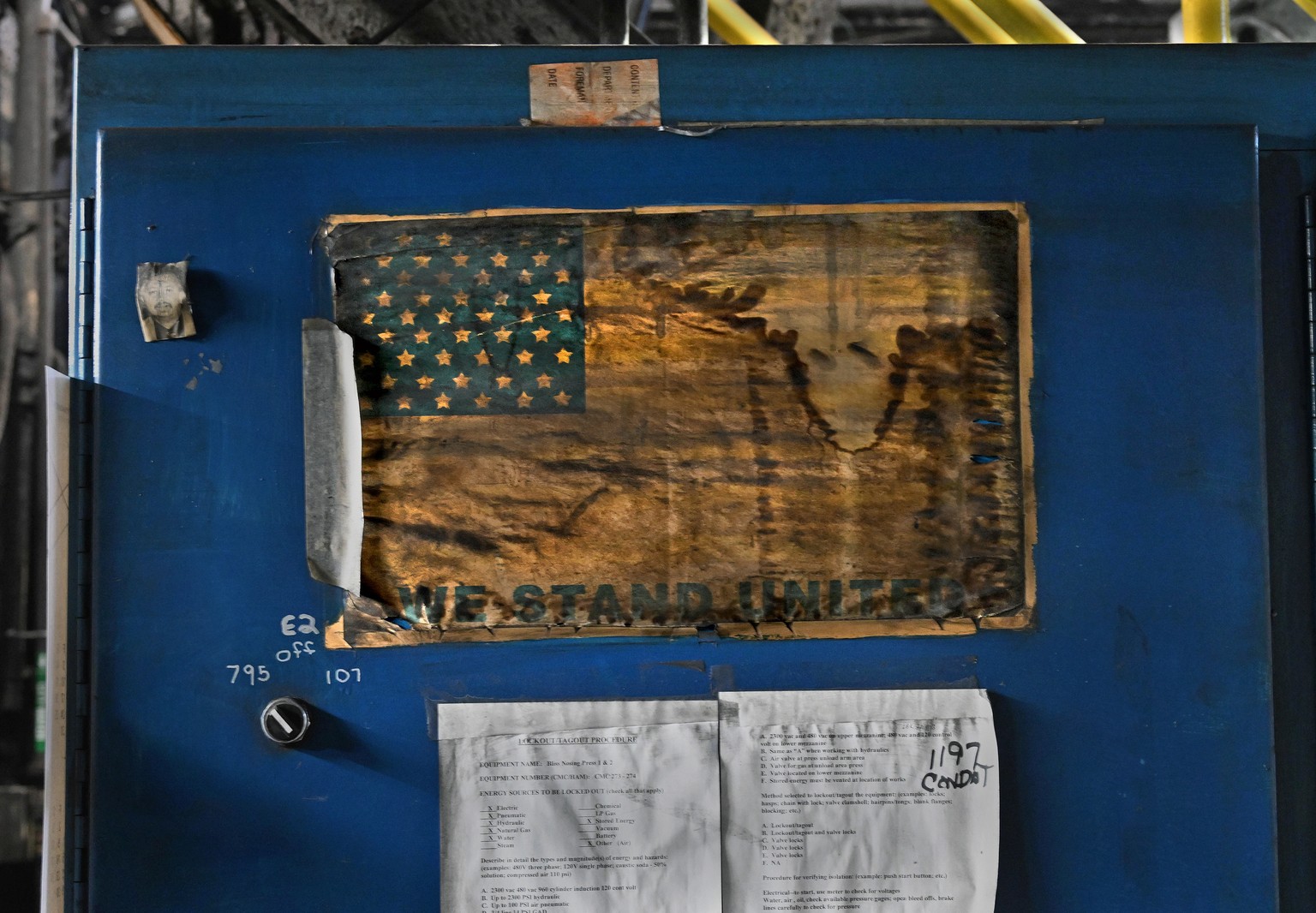 Молодая женщина работает в здании для заливки расплава. Это самое высокое сооружение на территории завода боеприпасов армии Айовы, расположенного на 30 квадратных милях прерий, лесов и кустарников в юго-восточном углу штата, недалеко от реки Миссисипи. Построенный в 1940 году, он является реликвией. В настоящее время это единственное место в Америке для крупносерийного производства 155-миллиметровых артиллерийских снарядов, ключевой этап которого известен как LAP (от англ. «loading, assembling, packing», рус.: погрузка, сборка, упаковка) — превращение пустых снарядов в боеприпасы. Здание выглядит совершенно обыденно, как и многие старые заводы в сельских городах. Есть только одна подсказка о том, что происходит внутри: с верхних этажей на землю спускаются гигантские желоба, похожие на водные горки. Они предназначены для эвакуации, хотя вряд ли кто-то сможет преодолеть радиус взрыва в здании, где тоннами хранится тротил.