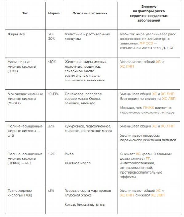 Функции нейтральных жиров таблица