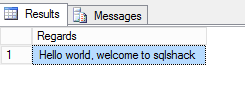 declare @message varchar(20) exec outputparam @paramout=@message out select @message as regards select CONCAT(@message,', welcome to sqlshack')