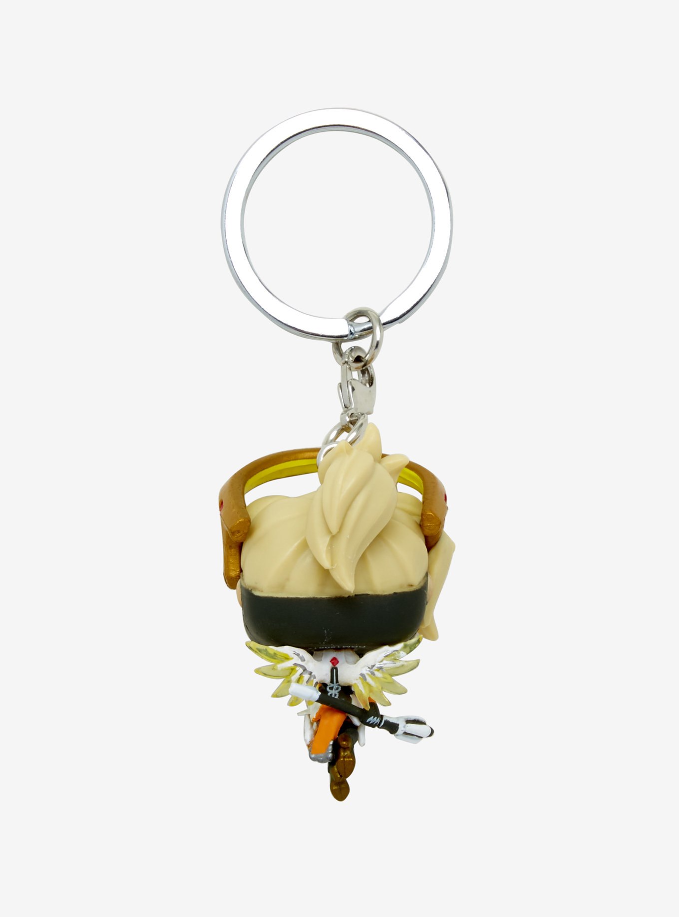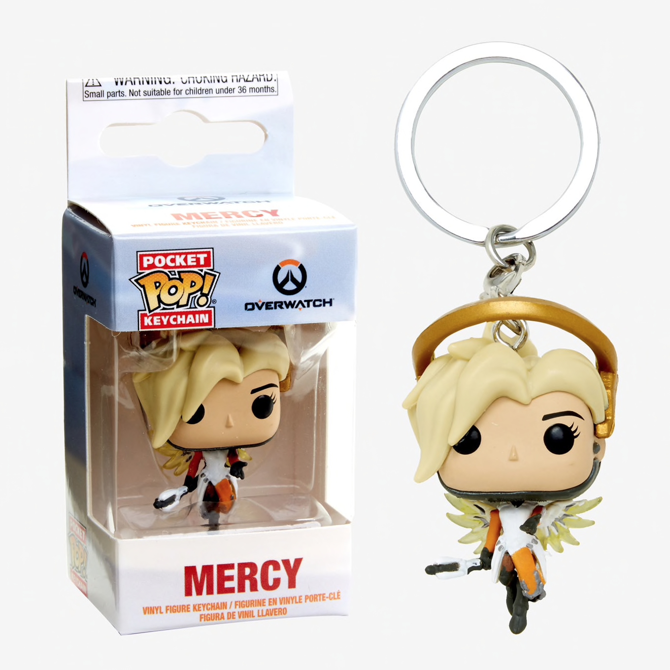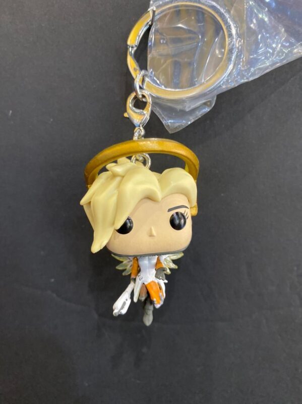 From Overwatch, mercy, as a stylized pop keychain from Funko! figure stands 1.5 inches and comes in a window display box. Check out the other Overwatch figures from Funko! collect them all!