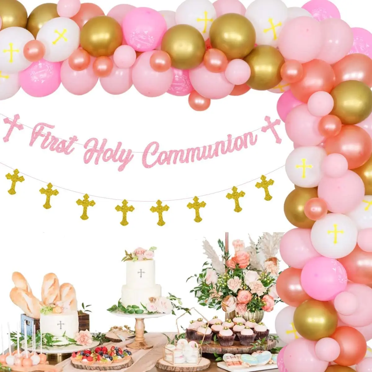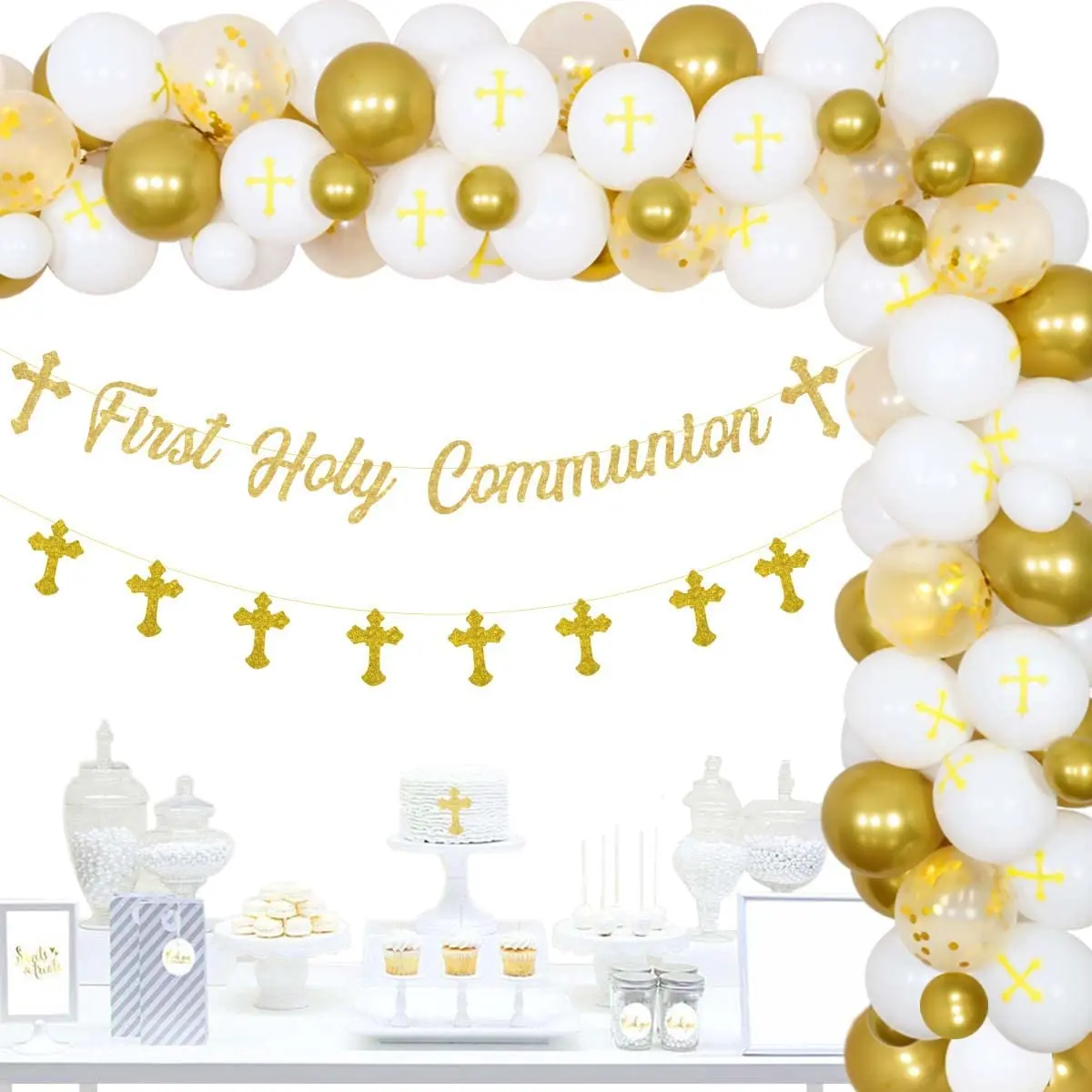 «Funmemoir Sage Green Gold Christening & Baptism Party Decorations First Holy Communion Cross Banner Balloon Garland Arch Kit» по лучшей цене на рынке! Всего за 17$ (1615рублей)