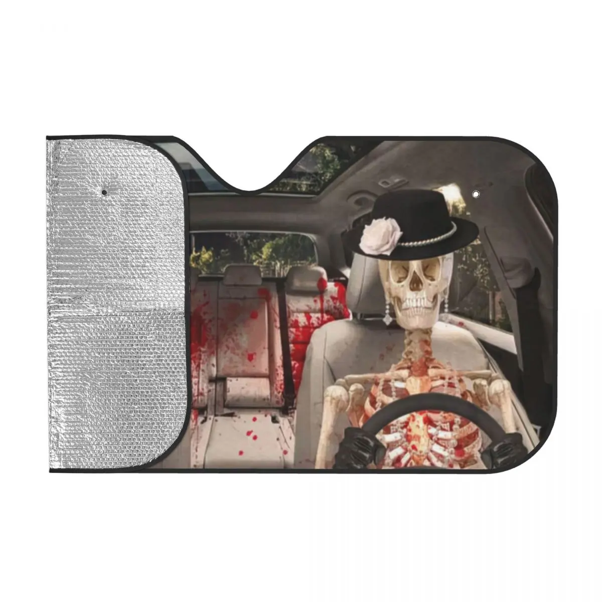 "Funny Skeleton Skull Car Windshield Sunshade Foldable Horror Skull Auto Front Window Sunshield SUV Trucks Vehicle Block UV Rays" * Buy Now With Free Shipping Just For $6
