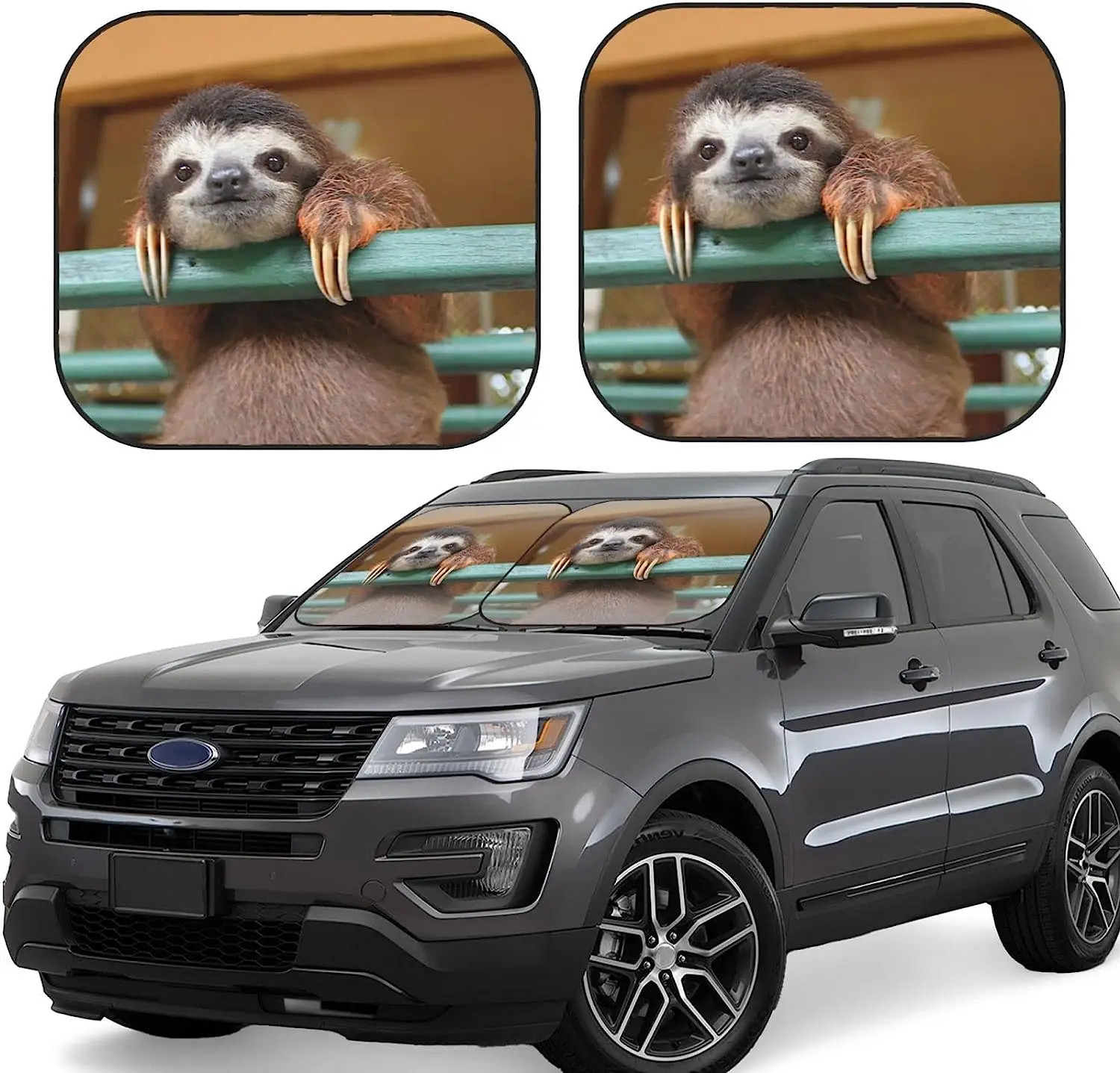 olKmOhWFHere you can buy Funny Sloth Bear Car Windshield Sun Shade Auto Foldable 2pcs Window Sunshades for Most Windshield Fodable Sun Visor Protector with free delivery to your post office.