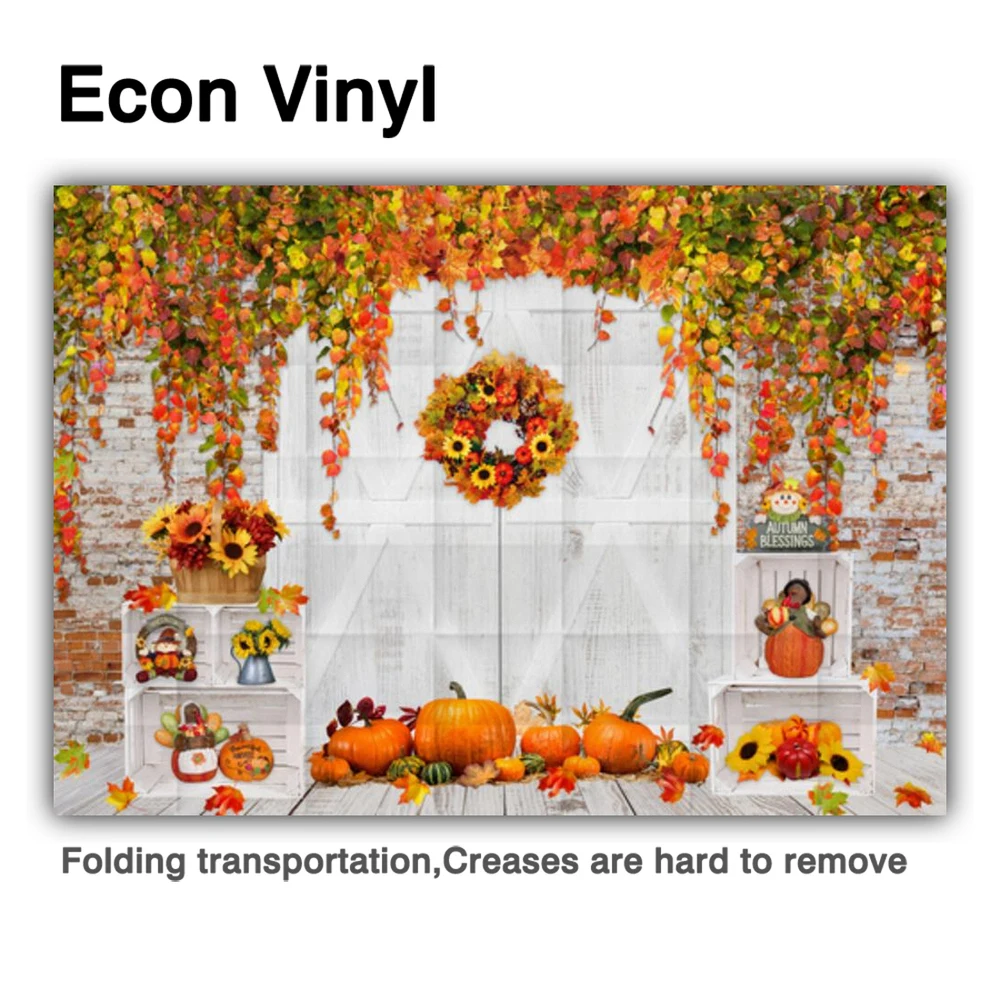 "Funnytree Autumn Theme Party Backdrop Pumpkin Brick Thanksgiving Fall Harvest Maple Leaves Floral Photography Props Background" * Buy Now Just For 14$