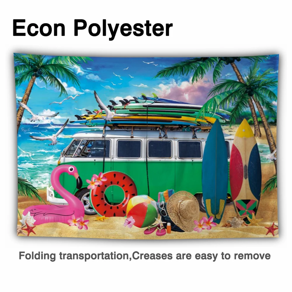 "Funnytree Summer Surfing Seaside Holiday Background Trees Recreational Vehicle Surfboard Flamingo Lifebuoy Tropical Backdrop" * Buy Now Just For 14$