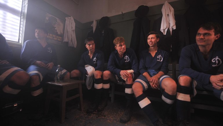 Футбольная команда прошлась по красивой брюнетке