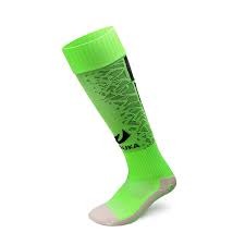 Для пошива спортивных носков изготавливаются из эластичных плотных тканей на основе хлопка. Футбольные носки имеют высокое голенище, так как помимо защиты стопы от натирания бутсами, они также защищают икры игрока от травм, полученных при скольжении по натуральному или искусственному газону, смягчают удары мяча.