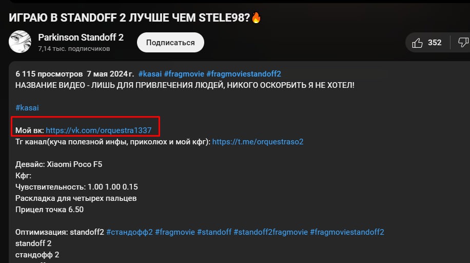 Контакты могут быть как в описании канала, так и в описании видео