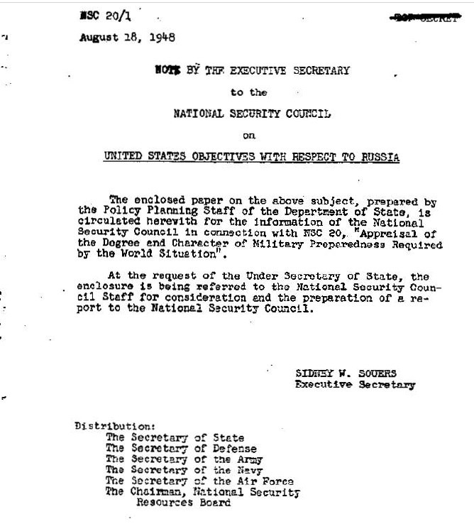 Обратимся к рассекреченному материалу «Директивы СНБ США от 18 августа 1948 г., над которым действительно работал Аллен Даллес.
