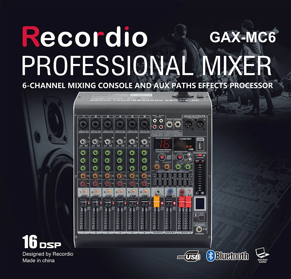 vcsPCuNWOfHere you can buy GAX-MC6 Professional Mixer 6 Channel Blueteeth digital mixing console with Reverb Effect Home Karaoke USB Live Interface Mixer with free delivery to your post office.
