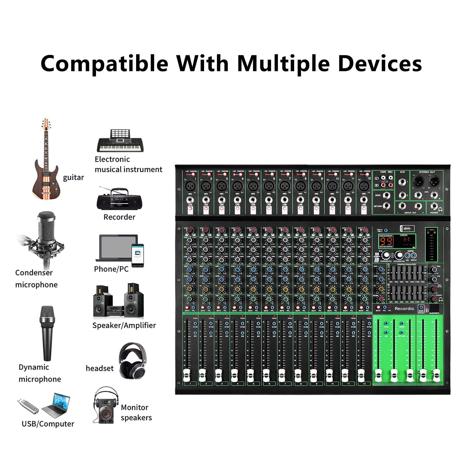 «GAX-PK12 New PK Series Mixer With 99DSP Dual 7-segment Equalizer USB BT 12 Channel Stage KTV Professional Audio Mixer» по лучшей цене на рынке! Всего за 282$ (26790рублей)