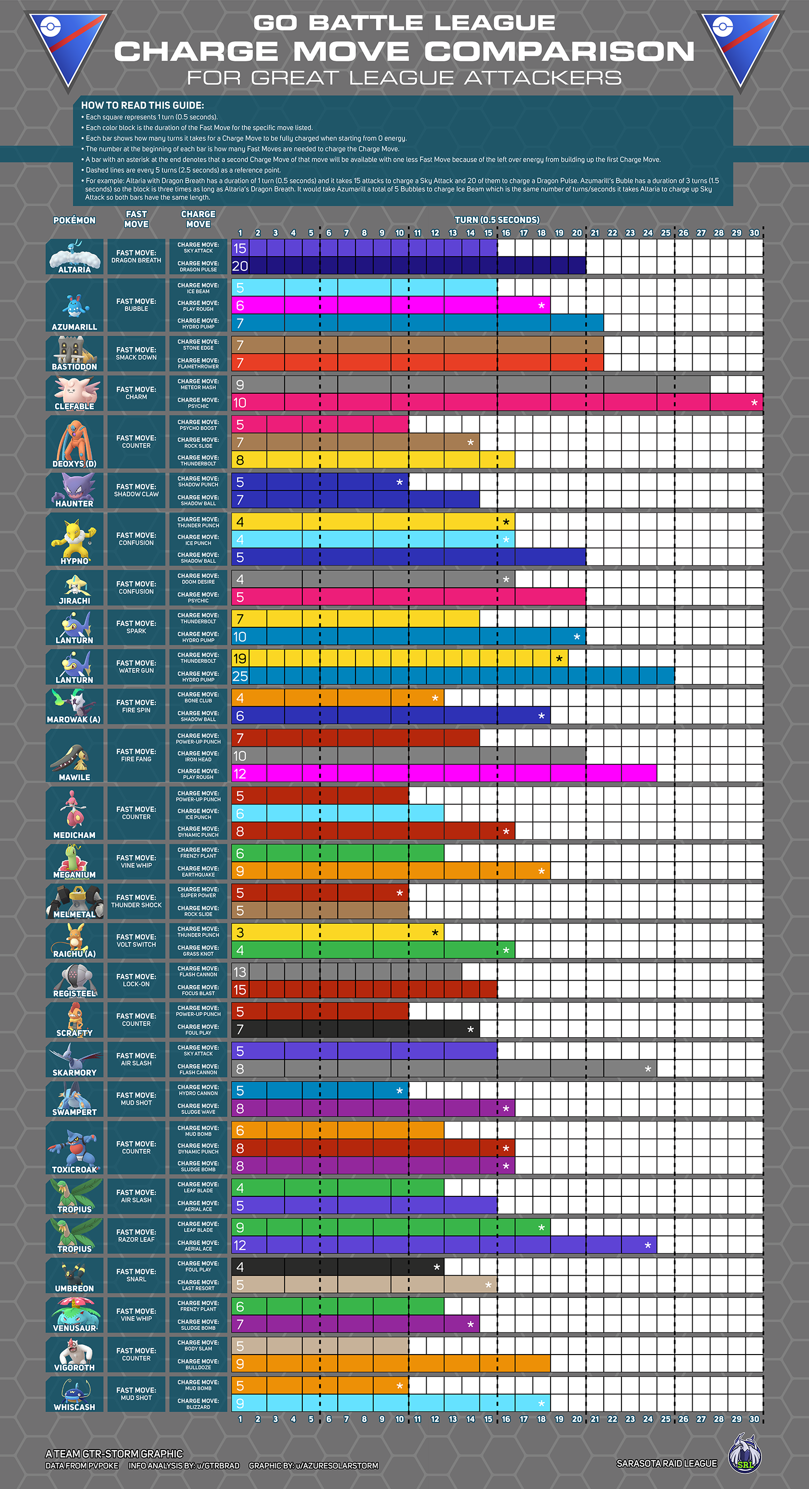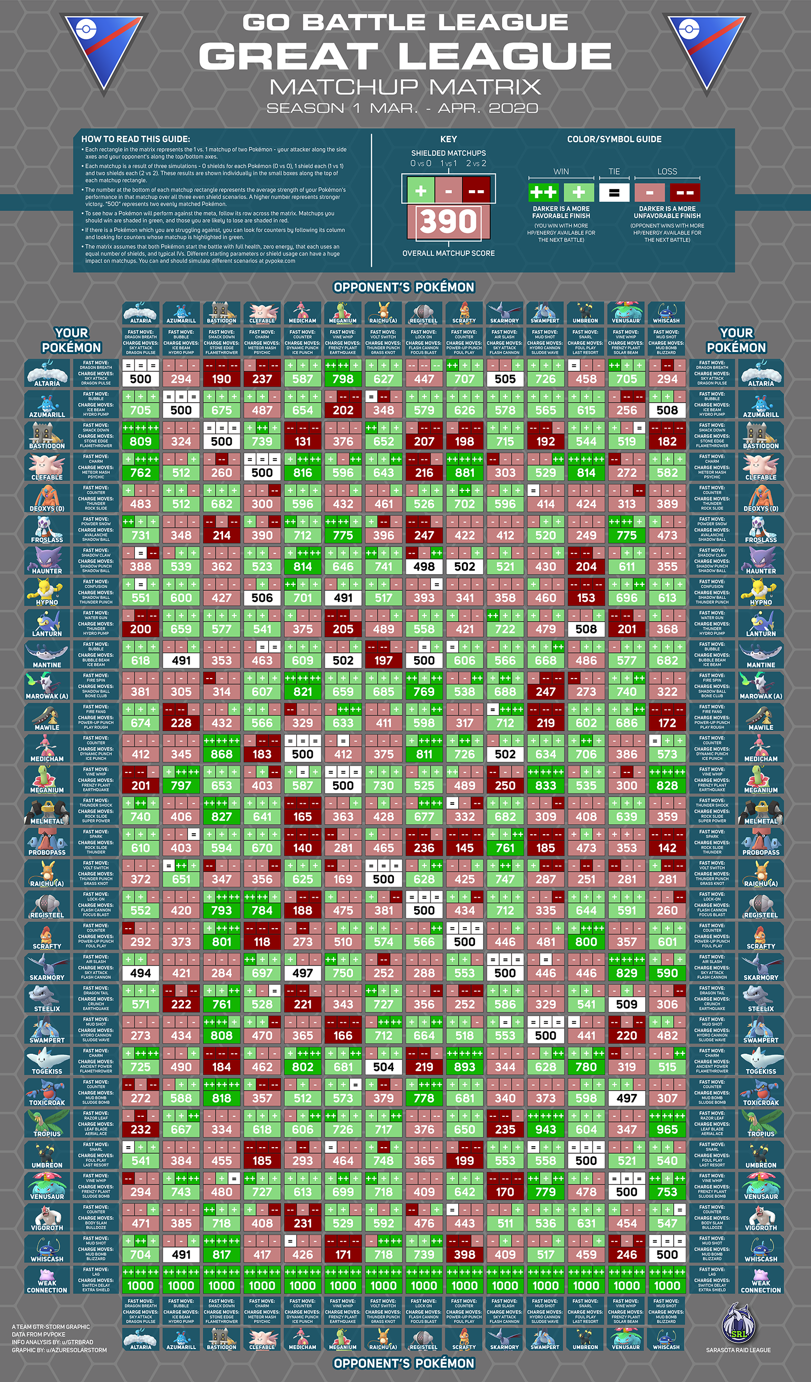Great League PVP Tier List хорош тем, что вы можете посмотреть всю информацию о покемоне, а так же прочитать советы по его использованию.
