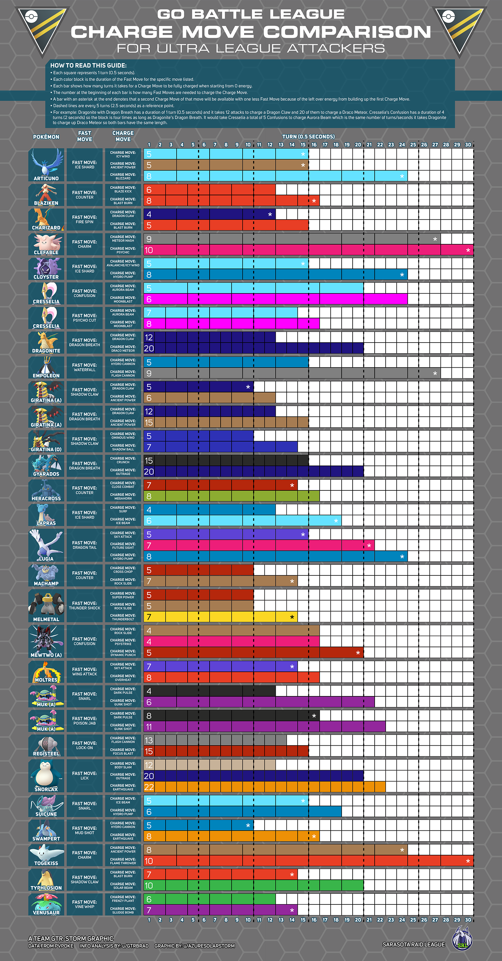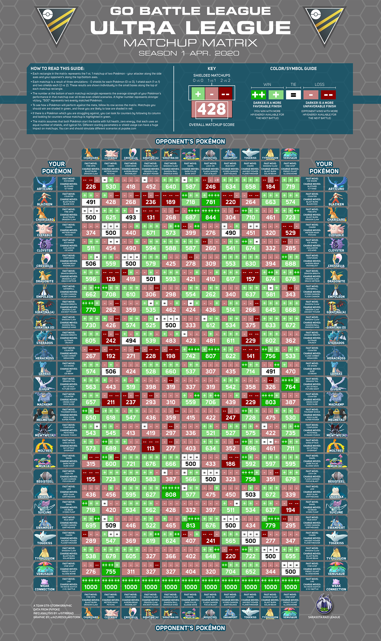 Ultra League PVP Tier List хорош тем, что вы можете посмотреть всю информацию о покемоне, а так же прочитать советы по его использованию.