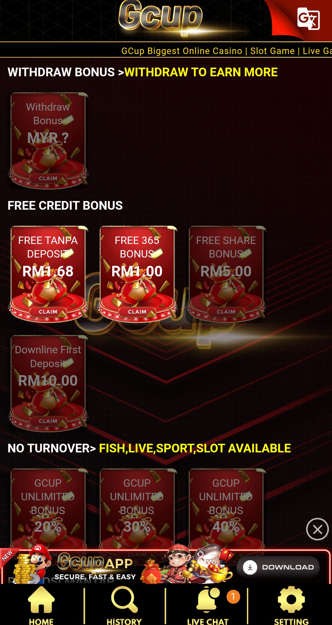 Daily bonus sehingga ๐ญ๐ฌ๐ฌ%