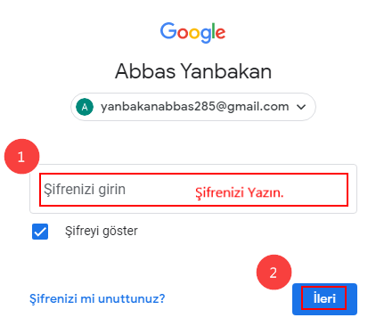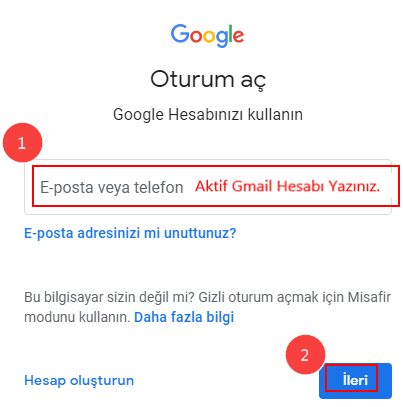 Bilgisayardan Gmaile Giriyoruz