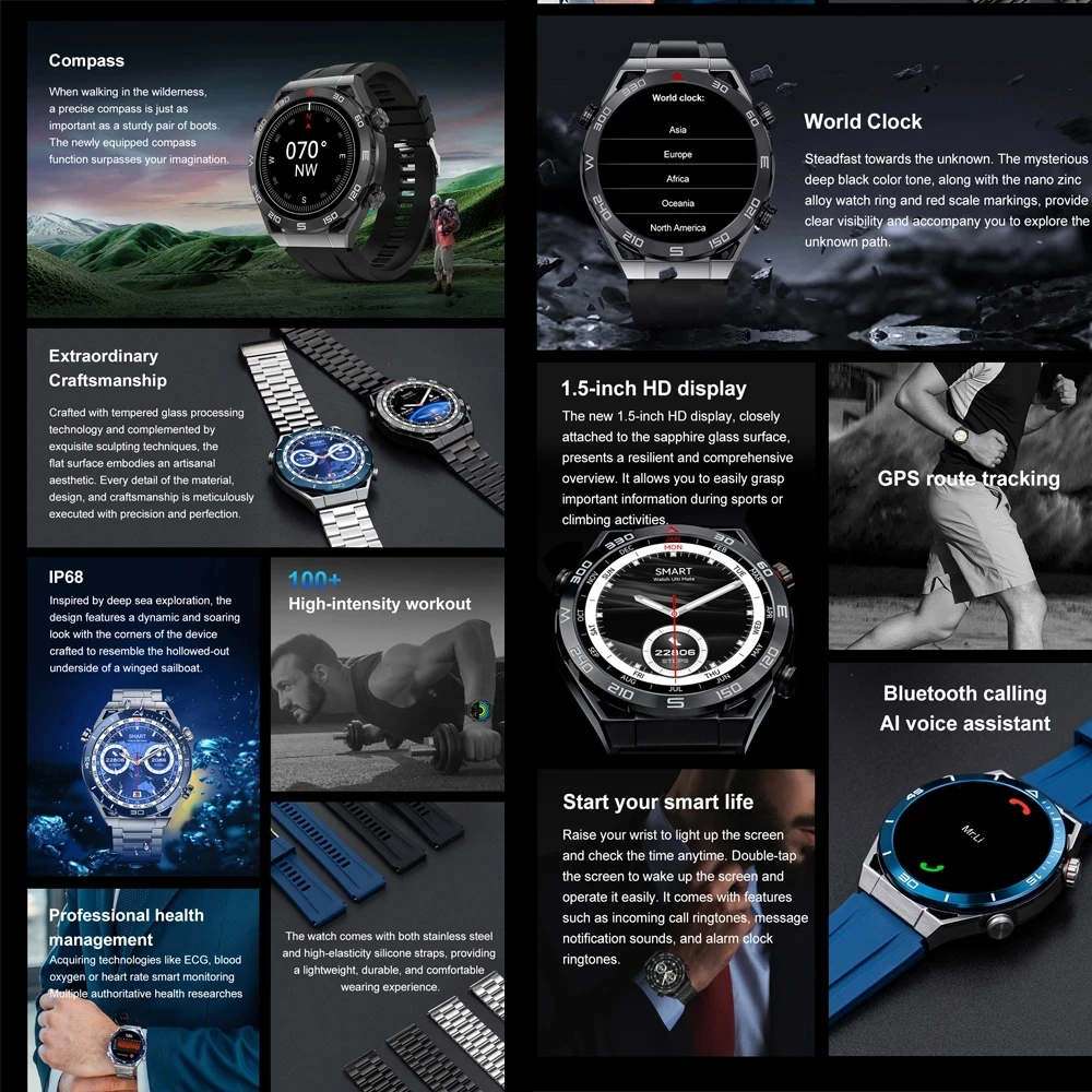 TtgFqtzTHere you can buy GPS Smart Watch Men 1.5 Inch HD Large Display Hi-Fi Voice Calling NFC Watches Compass IP68 Waterproof ECG Smartwatch For Huawei with free delivery to your post office.
