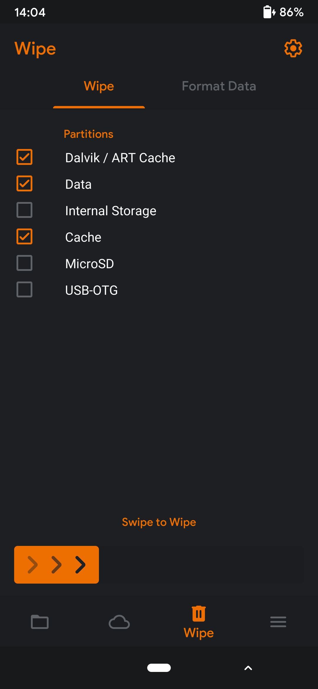 • Wipe Data/Dalvik Cache/Cache
