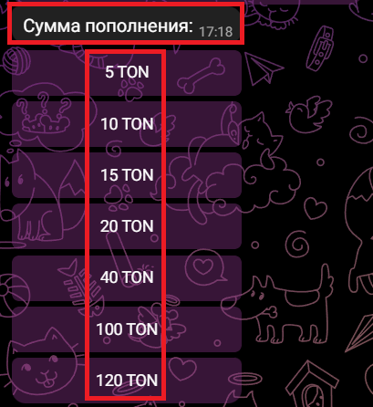 Покупка платного контента в боте происходит через криптовалюту TON, но оплата через сайт, которая предоставлена в боте, дает вам возможность оплатить сумму через любую криптовалюту. Переходим на сайт пополнения.