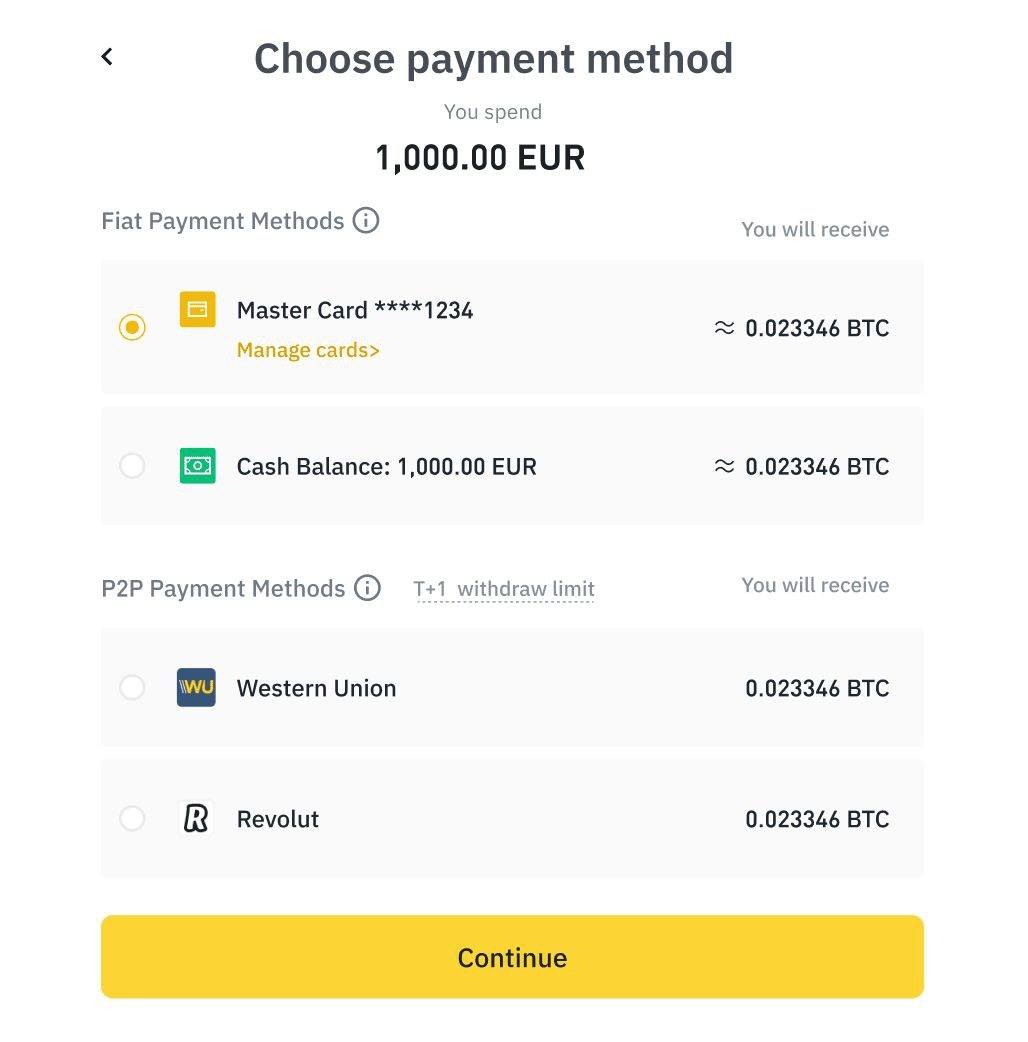 Если у вас способ оплаты не совместим с биржей Binancе.