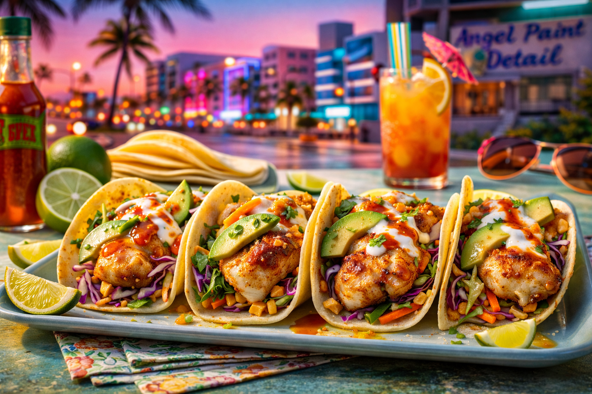 Вечер, ты только что припарковал свой Chevy на пляже Вайс-Бич, ветер треплет волосы, а карман приятно греет пачка зелени. Дела сделаны, солнце садится и живот требует топлива. Забудь про гамбургеры из East Beach Diner. Сегодня мы замутим по-серьезному: рыбные тако с хрустящей капустой и кислинкой лайма. Такая еда тебя не подведет. Включай радио Blue Ark, доставай сковороду. Покажем этому городу, как надо готовить рыбу.