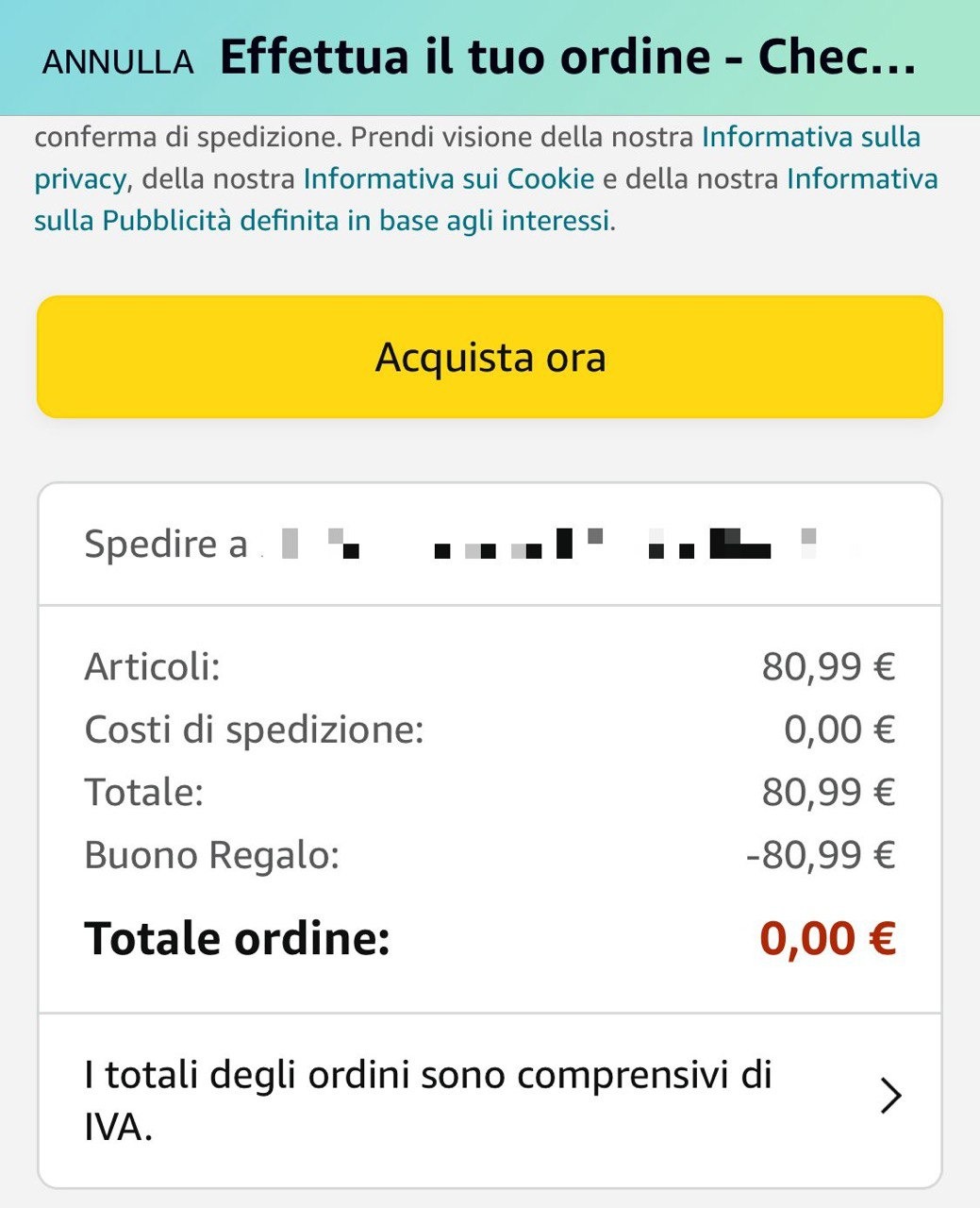 Passo numero 2: Aggiungi al carrello il prodotto e procedi all'ordine
