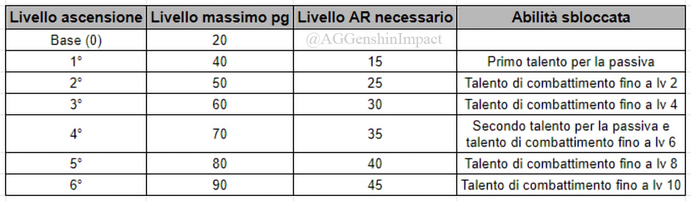 Ogni personaggio può ricevere un'ascensione (limit break) fino a 6 volte. I materiali base per l'ascensione si ottengono dai boss elite e dai nemici. Ogni limit break del pg sblocca: