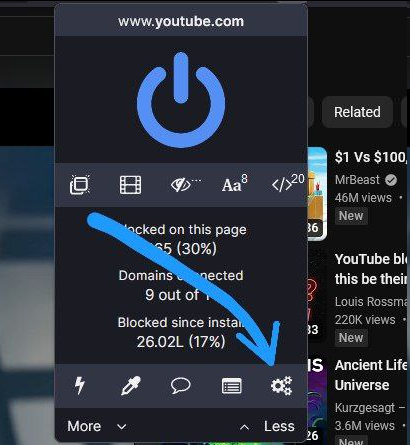 Step 1: Open the uBlock Extension and click the settings icon