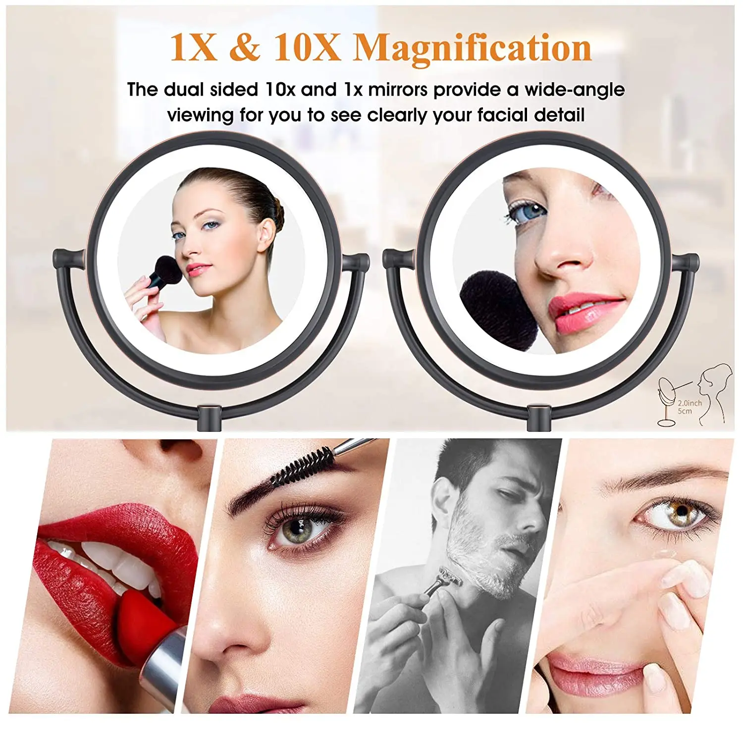 KTpCChKFzHere you can buy GURUN 8.5 Inch Tabletop LED Lighted Makeup Mirror with 10x Magnification Double Sided Vanity Mirror Plug Power Oil-Rubbed Bronze with free delivery to your post office.