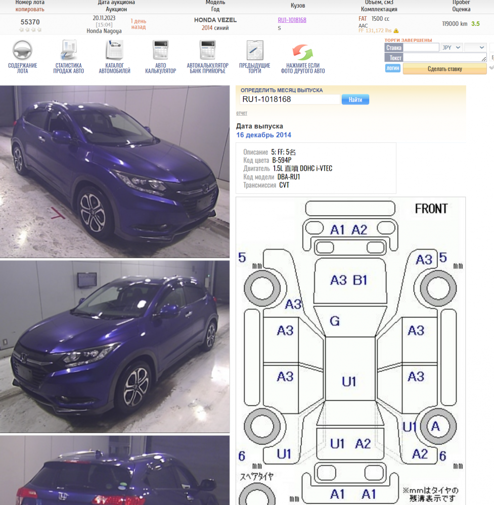 Габариты хонда везел 63 фото