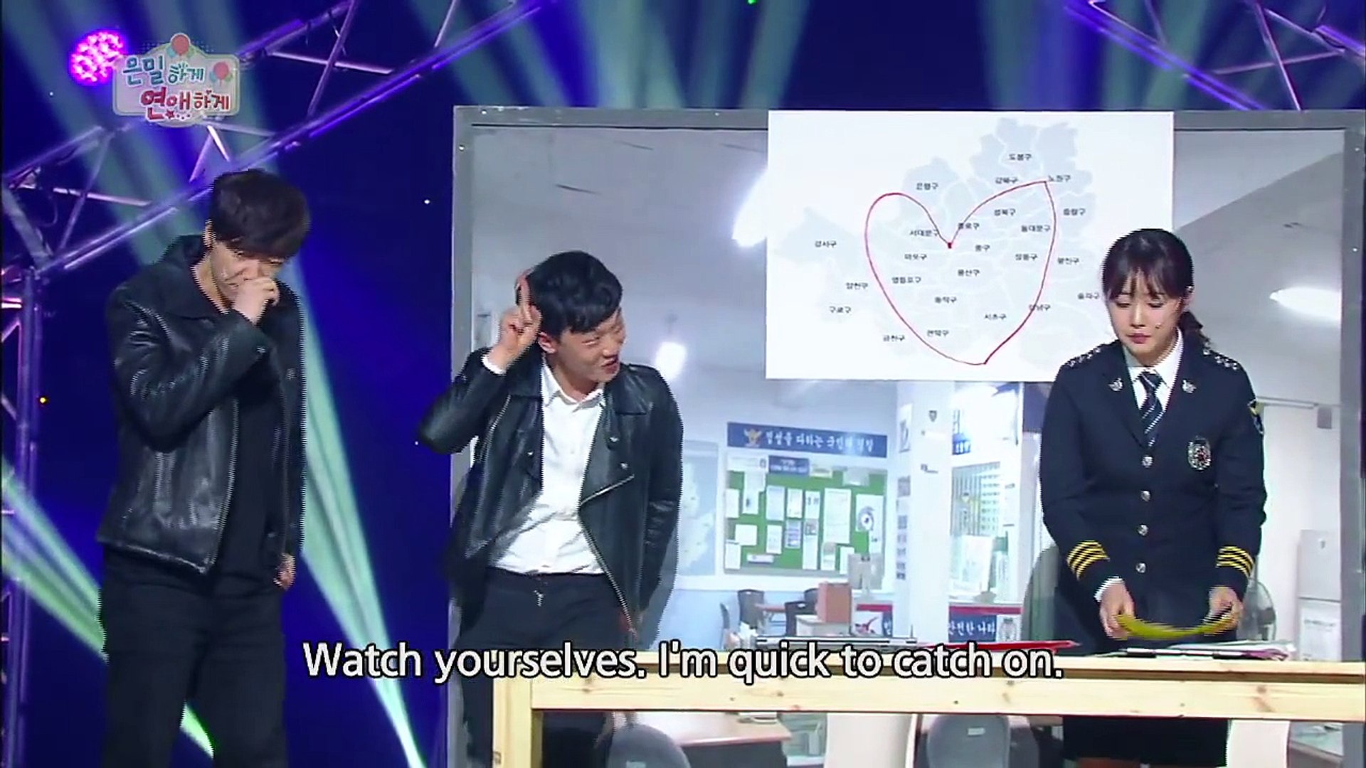 Jimin, flustered, waved her hand and tried to deny that, but Kim Yeonghui just shouted, "Heo Gyeonghwan!", a name of another comedian who Jimin was previously involved in a dating rumor with, which made her turn red, and it aroused some curiosity from the other people present . The host, Shin Donengyub asked Yeonghui what she meant .