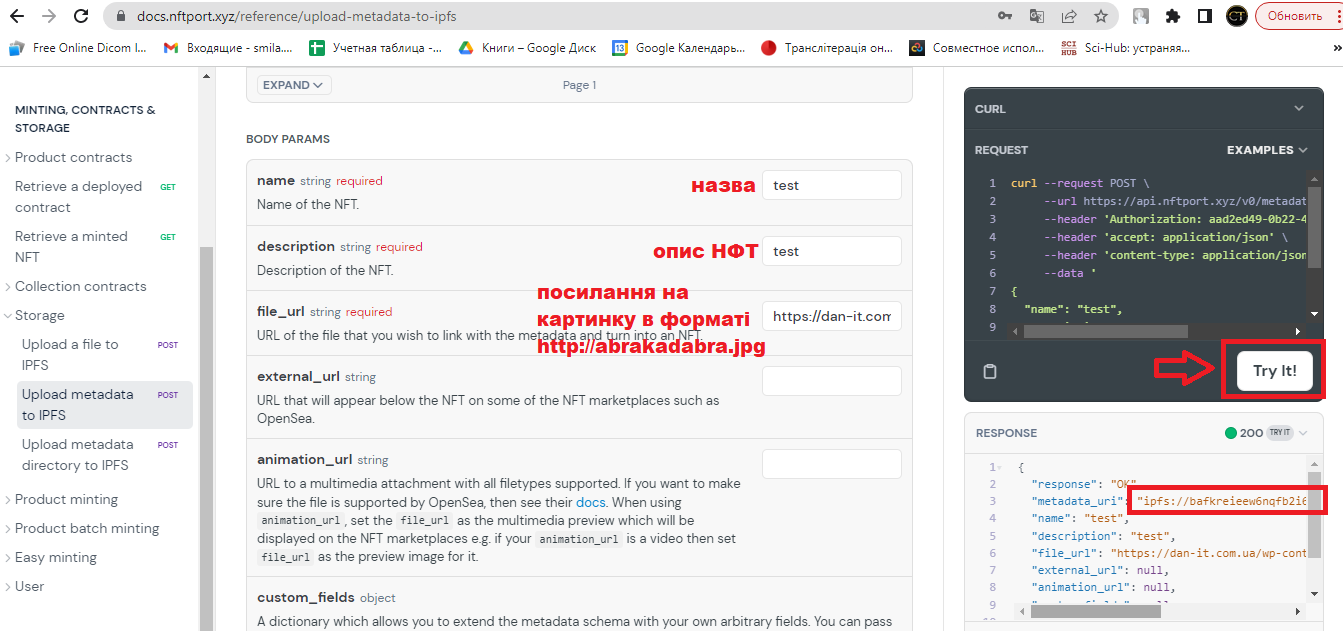 Гайд НФТ (частина 2)Igor One !warpЗаходимо на сайт nftport.xyz , реєструємся.далі переходимо за посиланням https://docs.nftport.xyz/reference/upload-metadata-to-ipfs