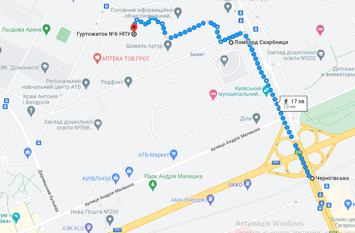 Відео маршруту від станції метро Чернігівська