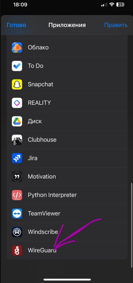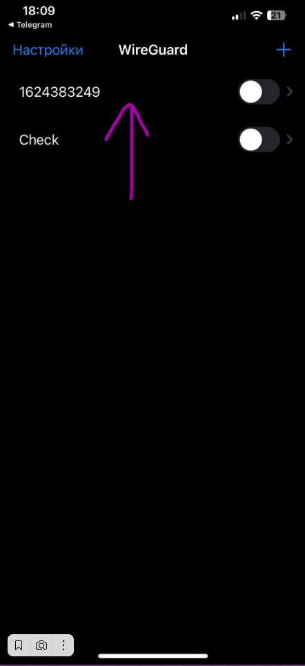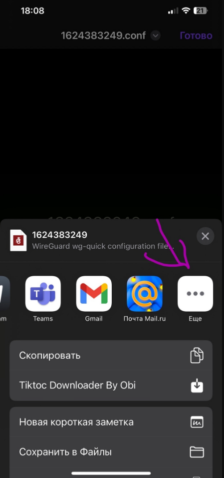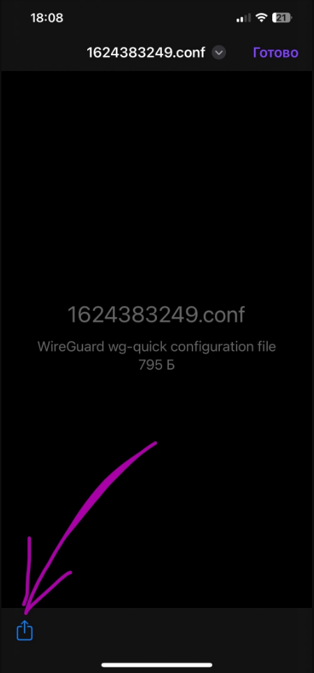 Нам понадобится данный файл, нажимаем на негоПовторяем действия, нам надо открыть данный файл с помощью приложения которое мы скачали ранееНажимаем на приложение WireGuardПри первом входе, приложение может попросить создать туннели для подключения и так далее. Соглашаемся на все что оно предлагает нам(если ничего не предлагает, то можно включать и пользоваться)В настройках появляется плашка VPN, тут мы тоже можем отключать и включать VPN(Советую отключать VPN когда пользуемся русскими приложениями по типу яндекс доставки, delivery club и тд.)