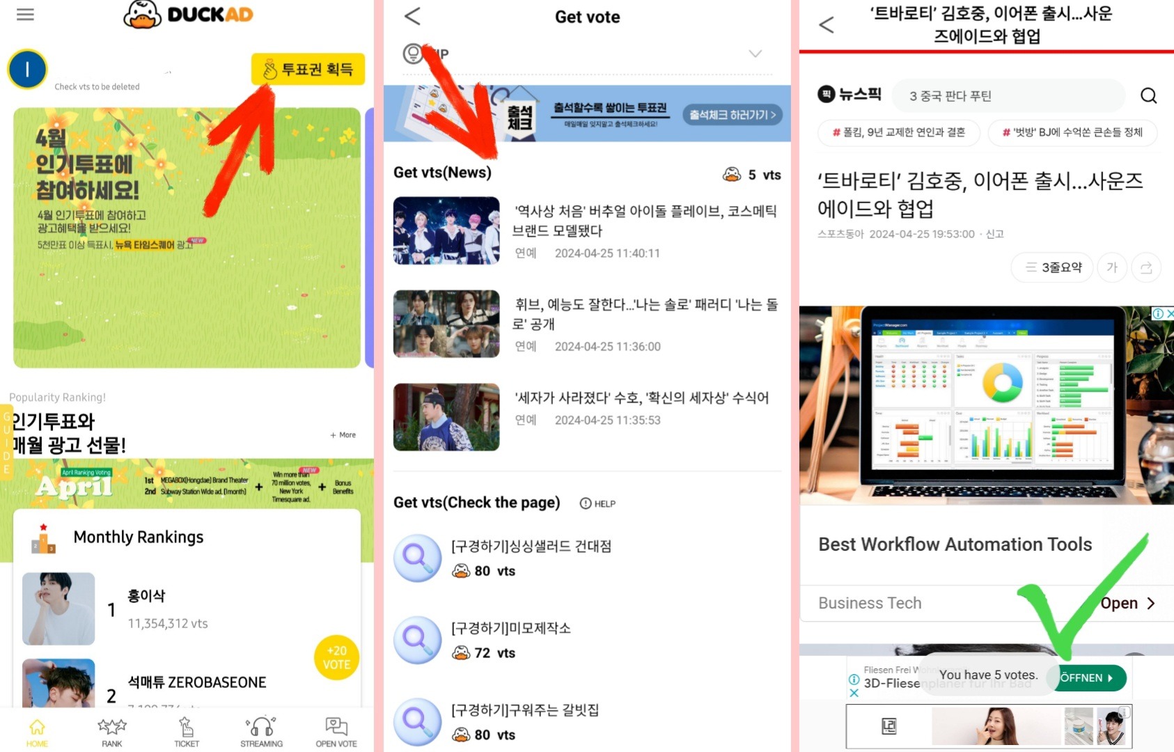 - Все в той же вкладке, где находится синий баннер для отметки, можно читать статьи. Нажимаем на статью, ждем когда красная полоска сверху дойдет до конца и снизу вылезет уведомление "You have 5 votes"