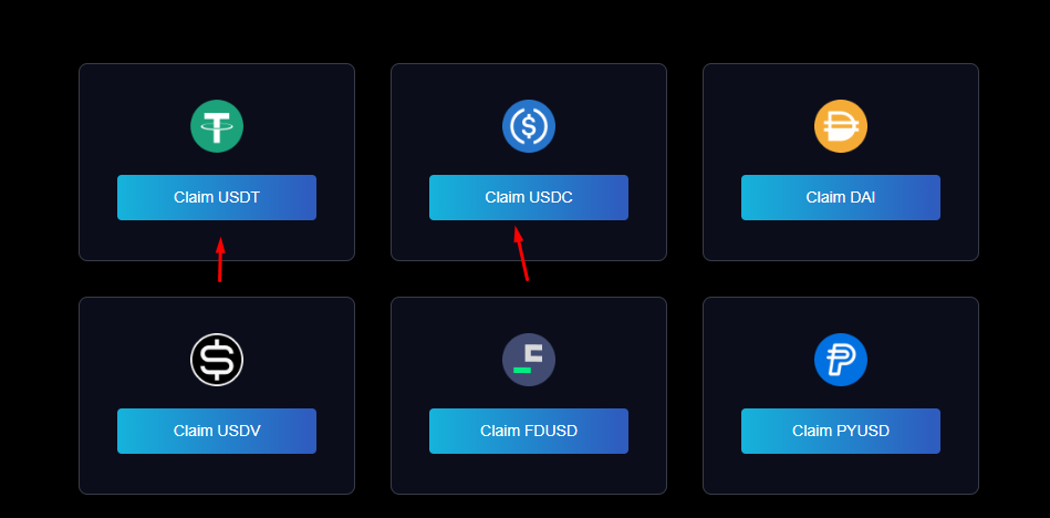 3.Далее переходим на сайт и берём тестовые токени USDT и USDC