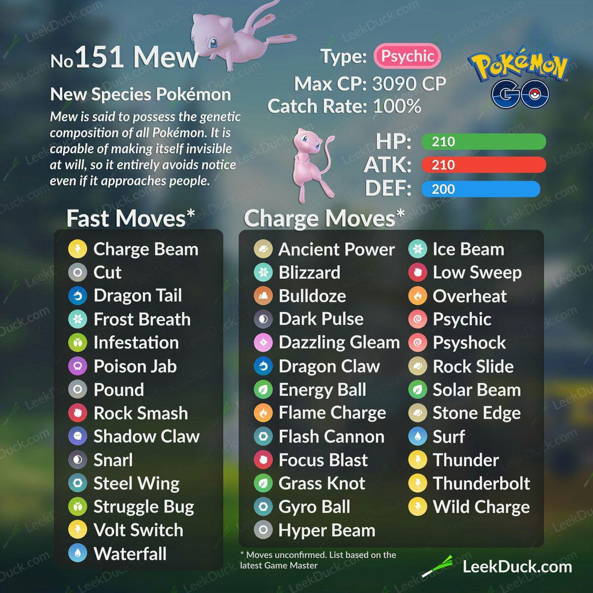 Как и все мифические покемоны, Мью не является оптимальным покемоном для какой-либо задачи. Поэтому мы не рекомендуем тратить ТМ на получение оптимального мувсета: это будет сложно и неоправданно.