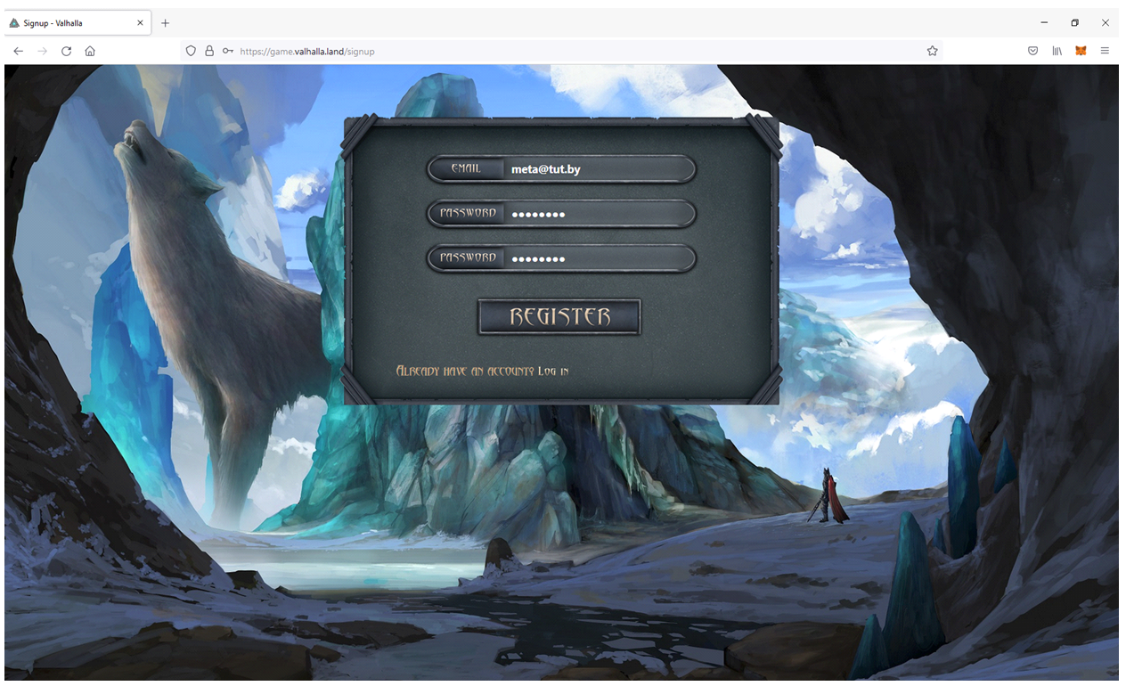 2. Перейдите по ссылке из анонса на регистрацию аккаунта в тестнет (будет опубликована 4 декабря в 17:00 по мск), авторизуйтесь в метамаске.
